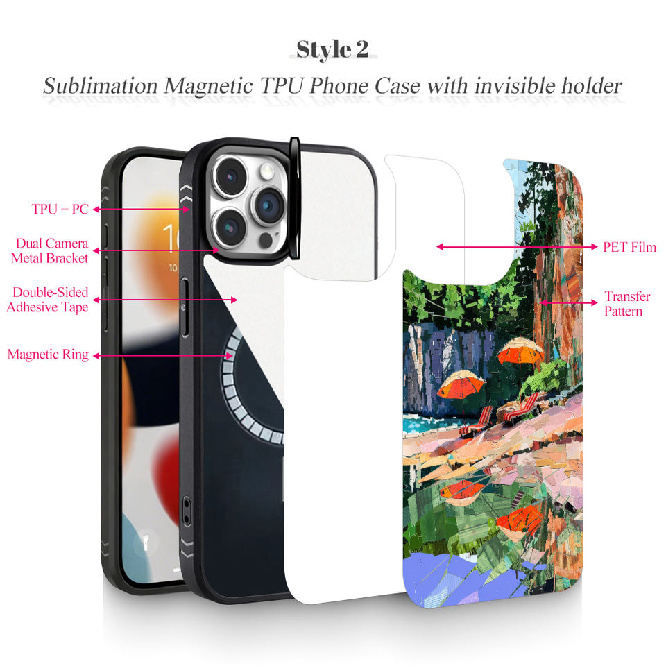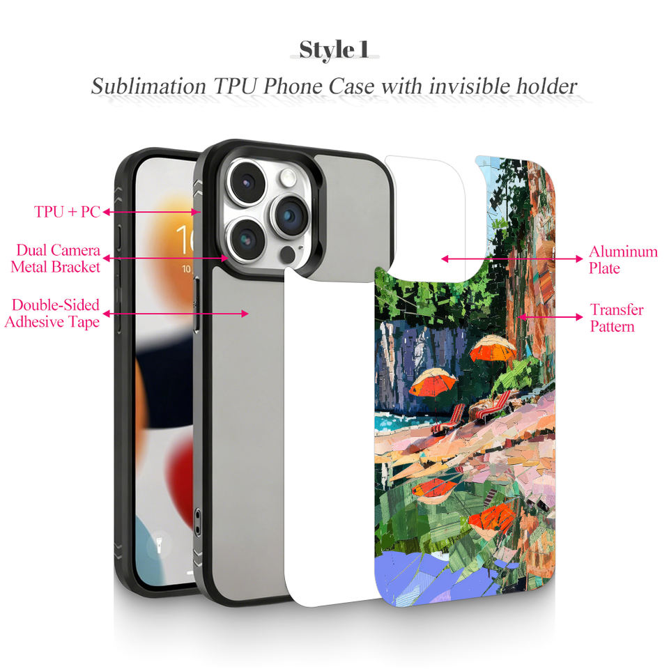 Nom du produit:Coque de téléphone en TPU pour sublimation avec support de cadre de caméra caché