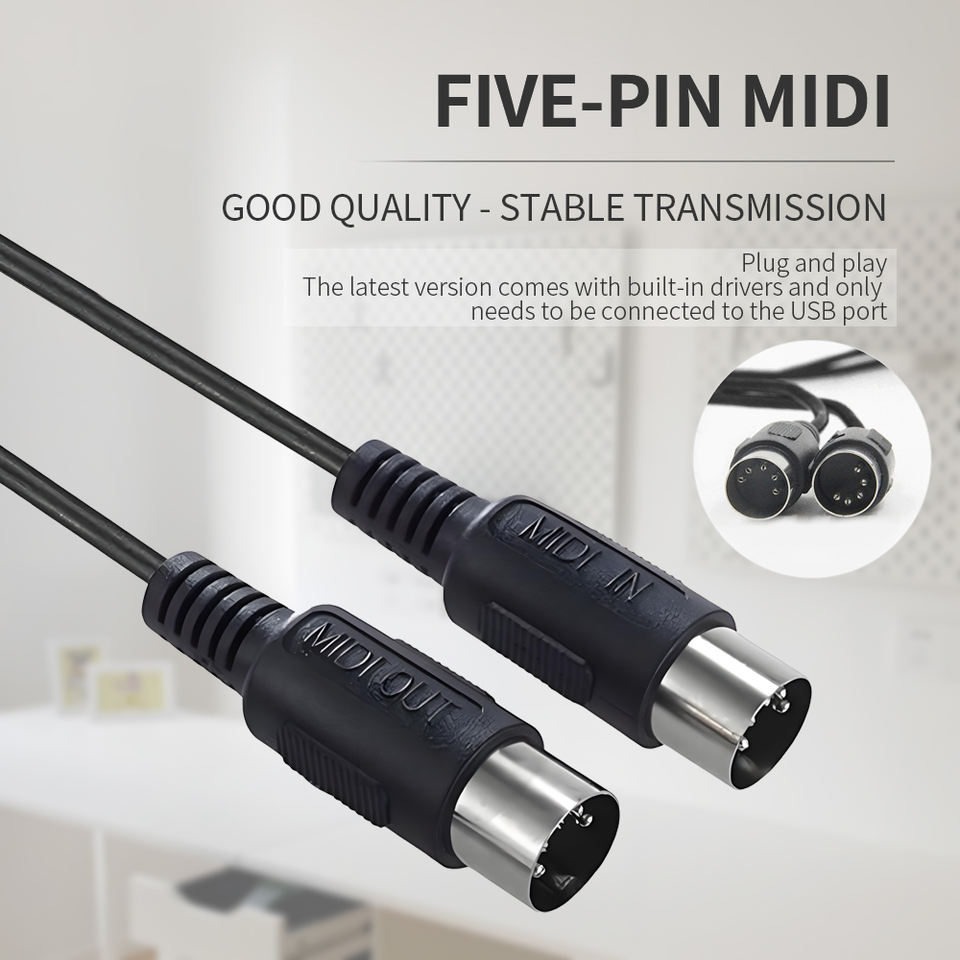 2m Noir 5 Pin MIDI Mâle vers USB 2.0 Mâle Interface 2 en 1 Câble Adaptateur avec Entrée et Sortie Connexion avec Clavier/Synthétiseur