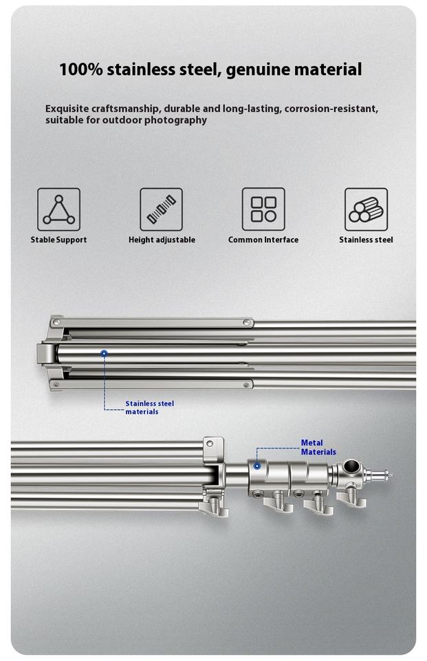2m Stainless Steel C-Type Magic Leg Tripod with 1/4 Screw Hole Pulley Cross Arm Pole Lamp