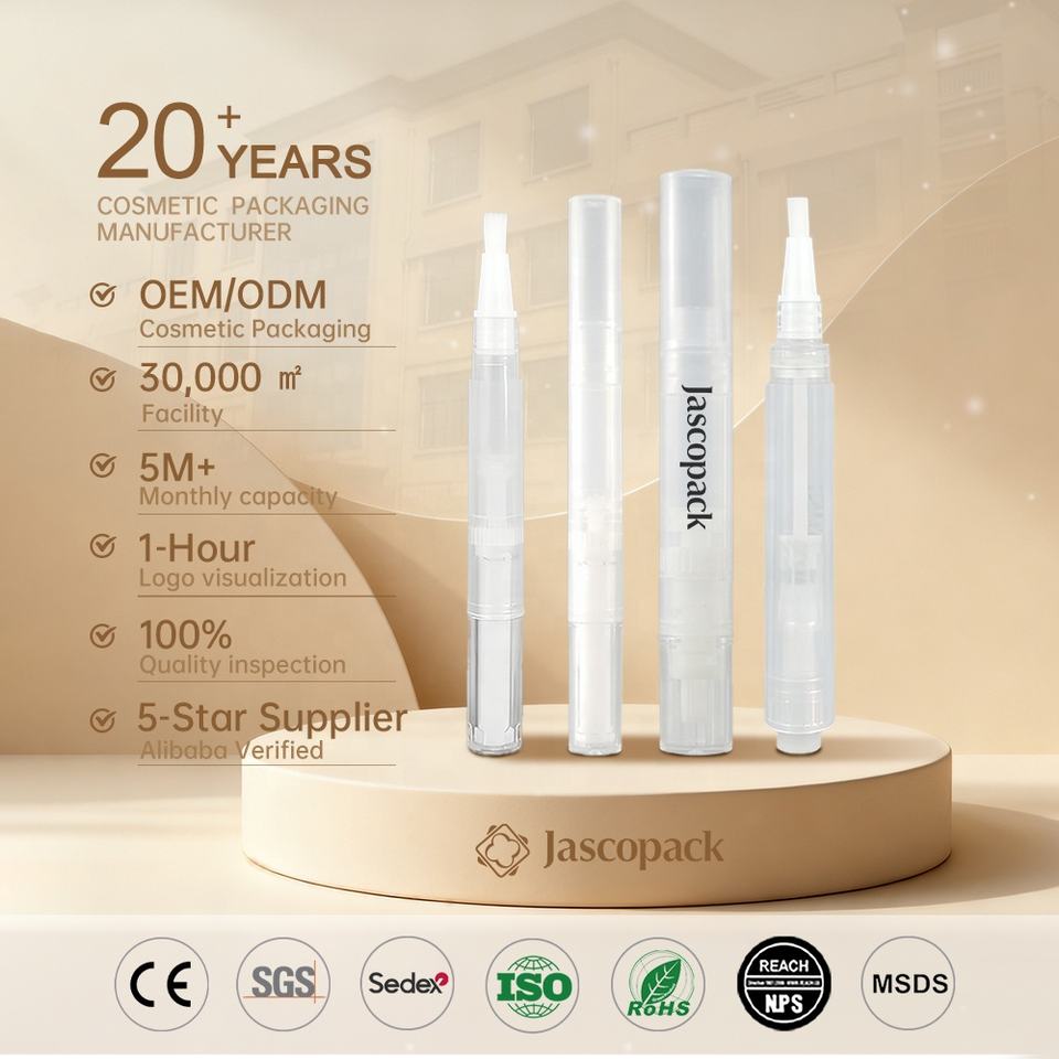 2ml, 2.5ml, 4ml, 6ml, plastique vide, Logo personnalisé, emballage d'huile de cuticule d'ongle, stylo de torsion avec applicateur de brosse
