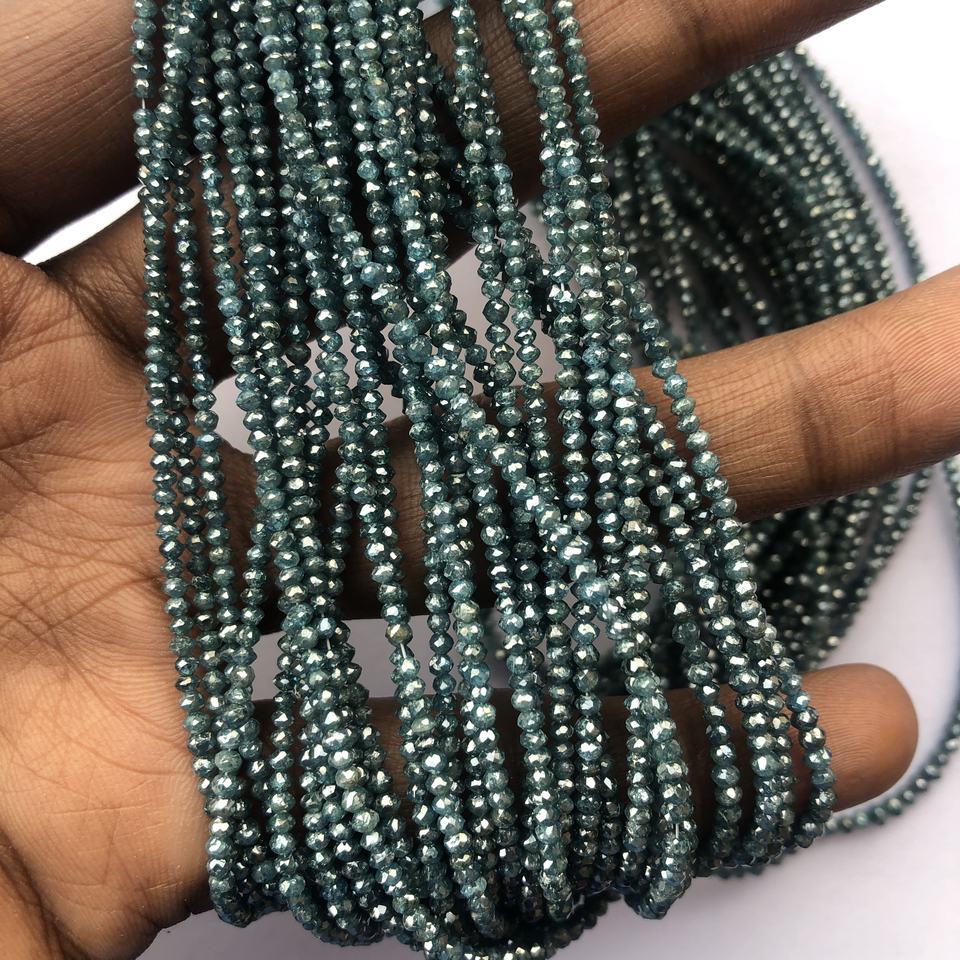 Fil de perles rondes facettées en diamant bleu naturel, 2 mm, 3 mm, 4 mm