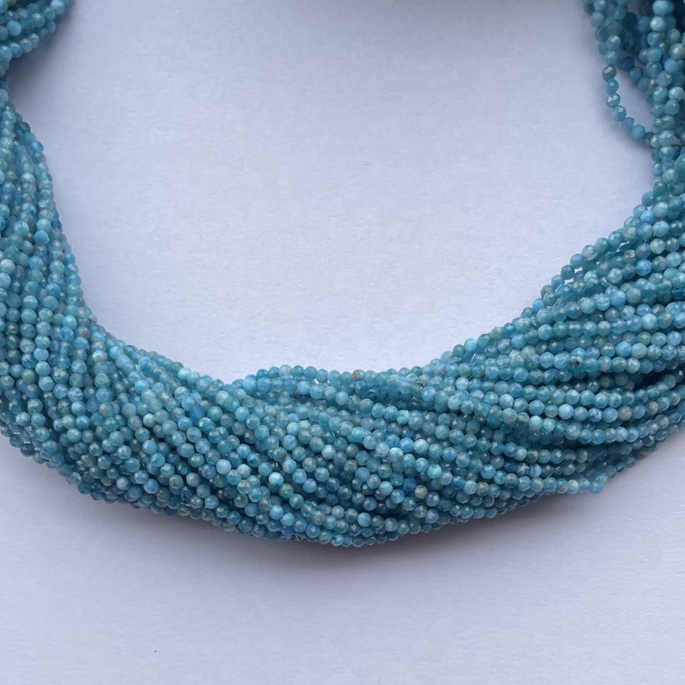 Product Name:2mm 3mm 4mm Natural Micro Neon Blue Apatite Faceted Beads Strand