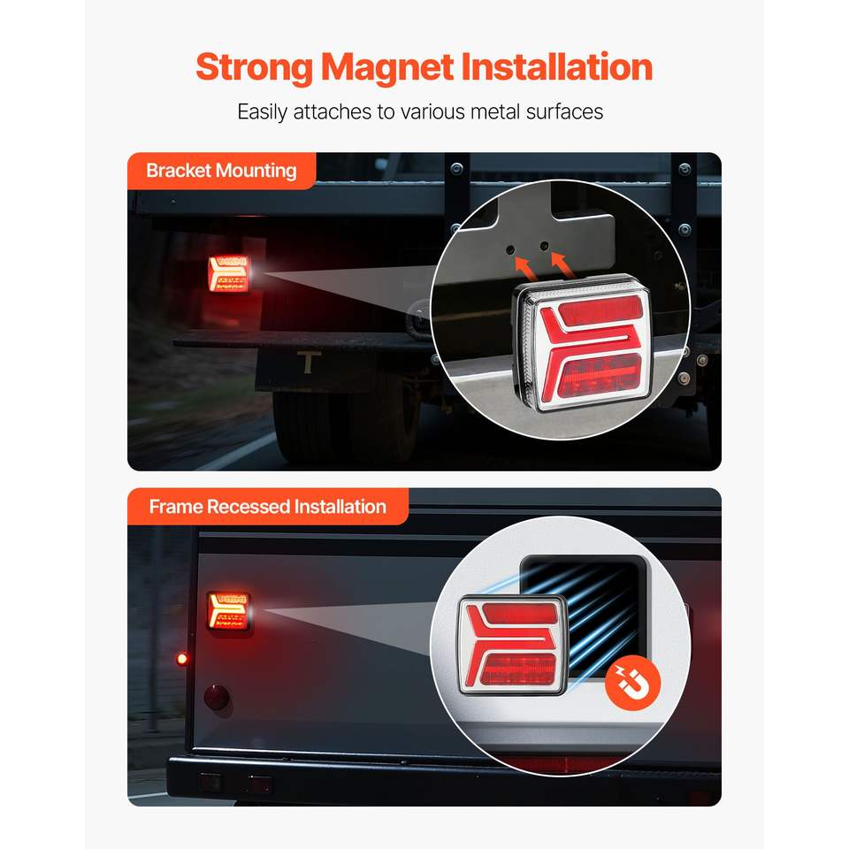 Kit de 2 feux arrière LED magnétiques carrés 12V étanches pour remorque, avec feux de gabarit, stop, clignotants et système d'éclairage pour camion