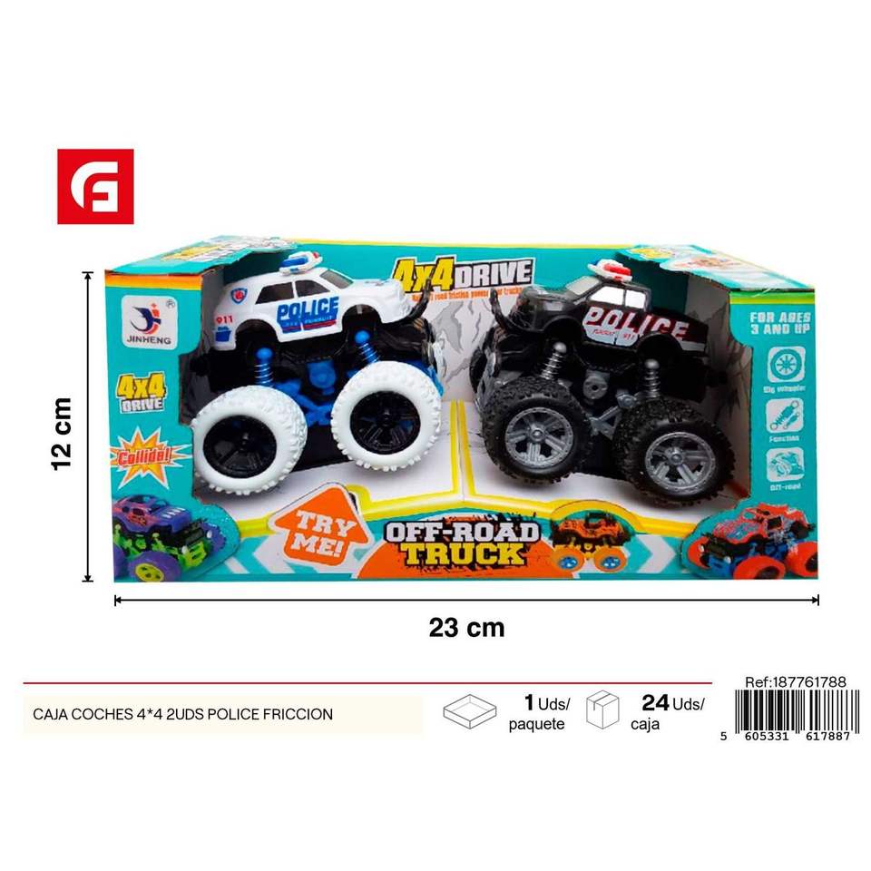 2pcs 4x4 Police Cars Toy Vehicle ABS Plastic Friction Truck for Kids Featuring Metal & Plastic Components