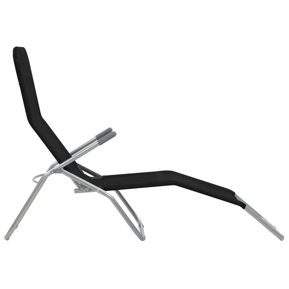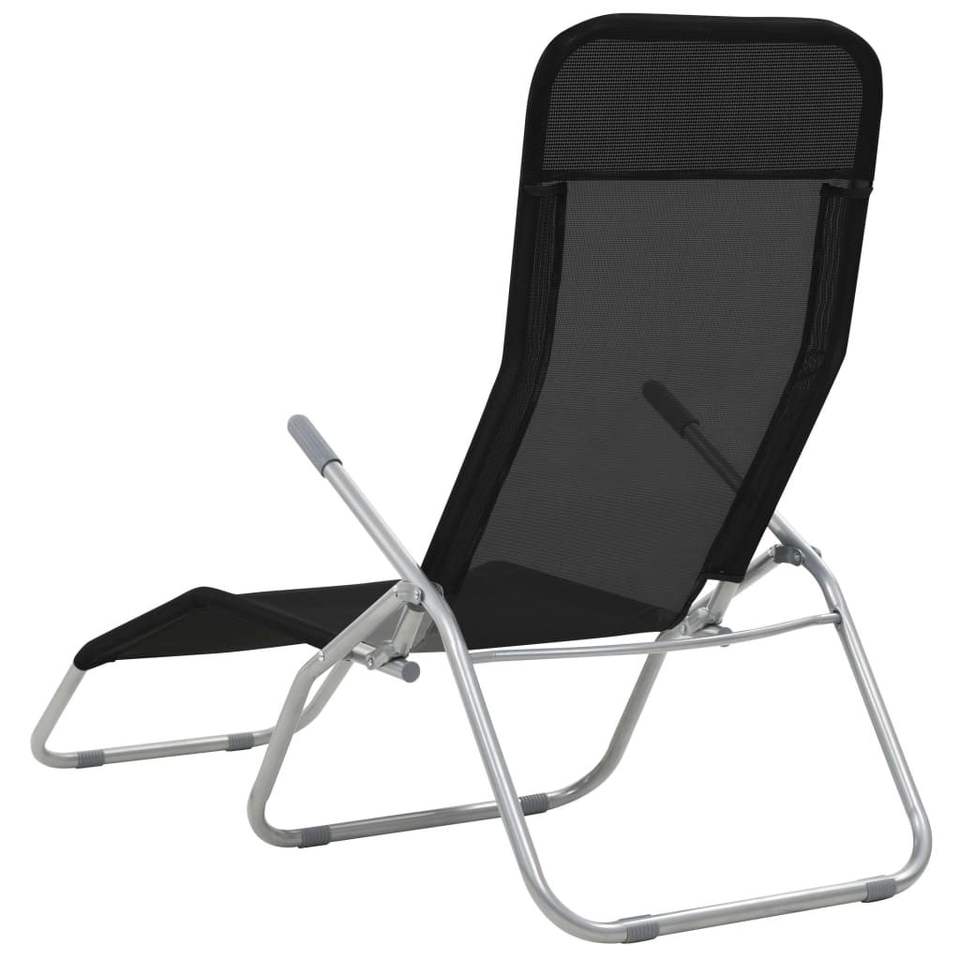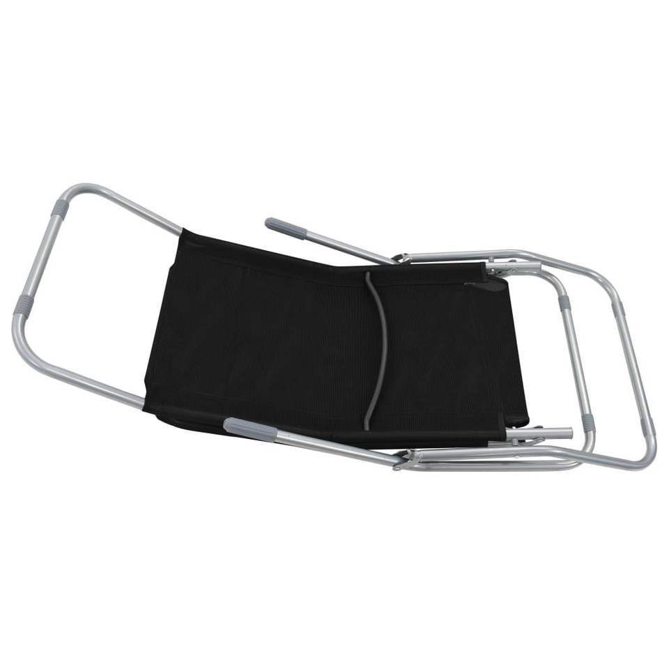 2pcs Black Textilene Folding Sun Loungers