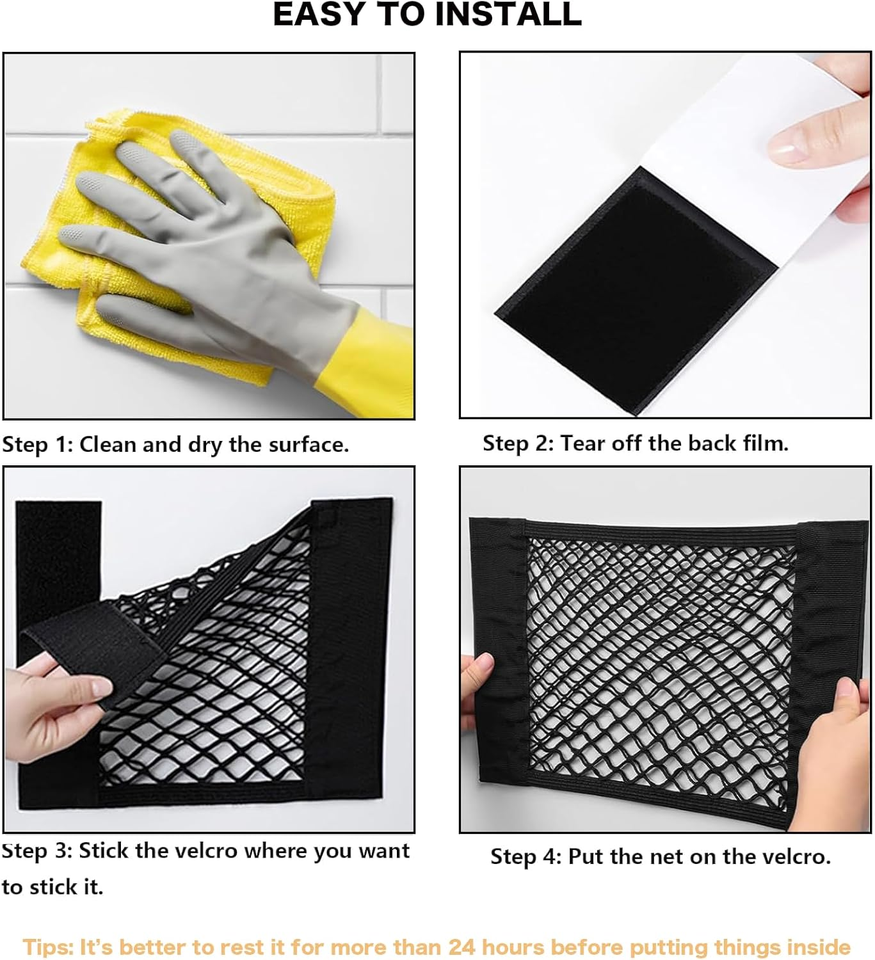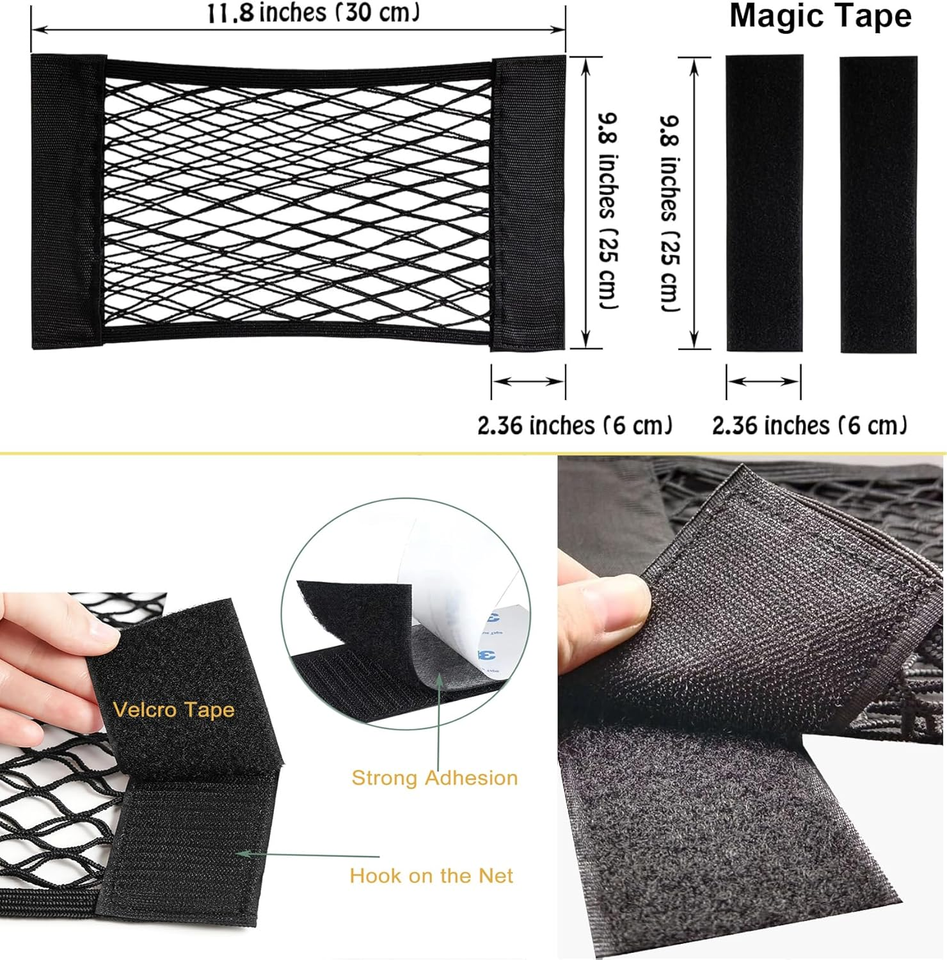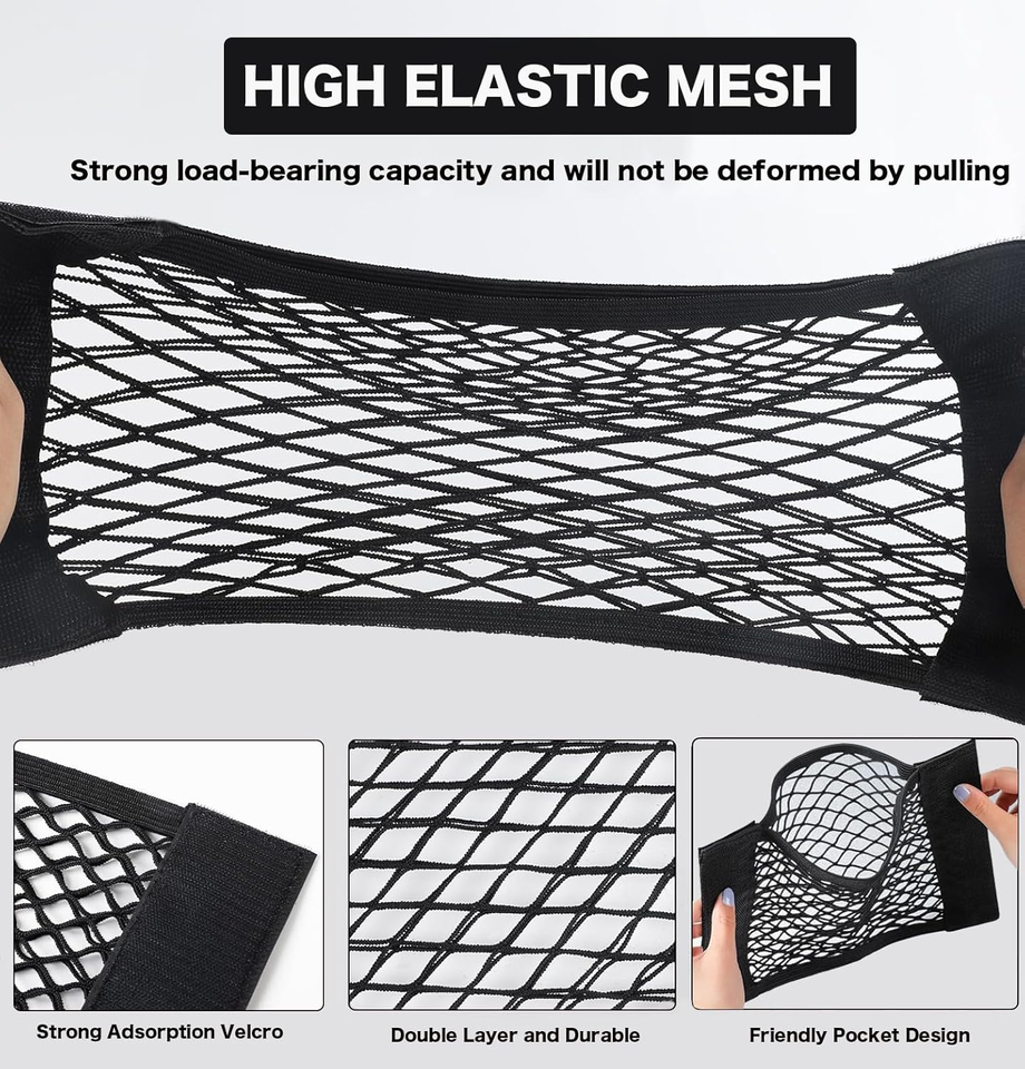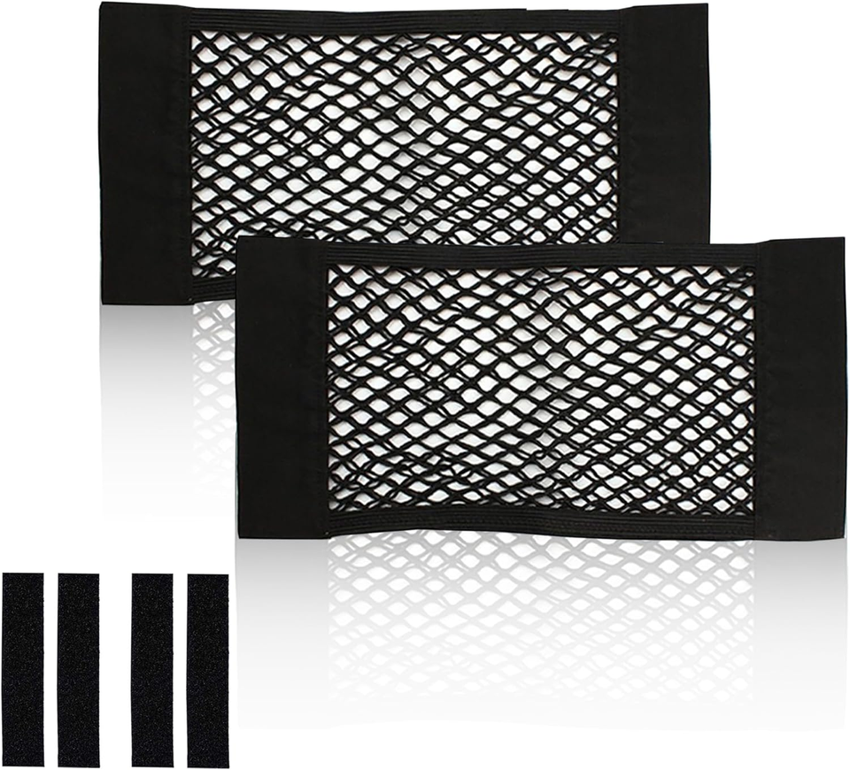 Lot de 2 filets de rangement pour voiture - Filet de rangement extensible en maille avec fermeture auto-agrippante, accessoires universels pour voiture, organisateur intérieur (S)