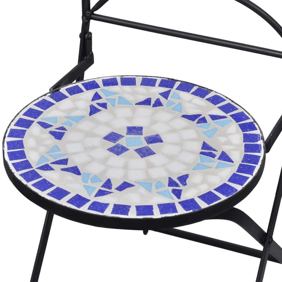 2pcs Ceramic Blue and White Folding Bistro Chairs for Patio Furniture