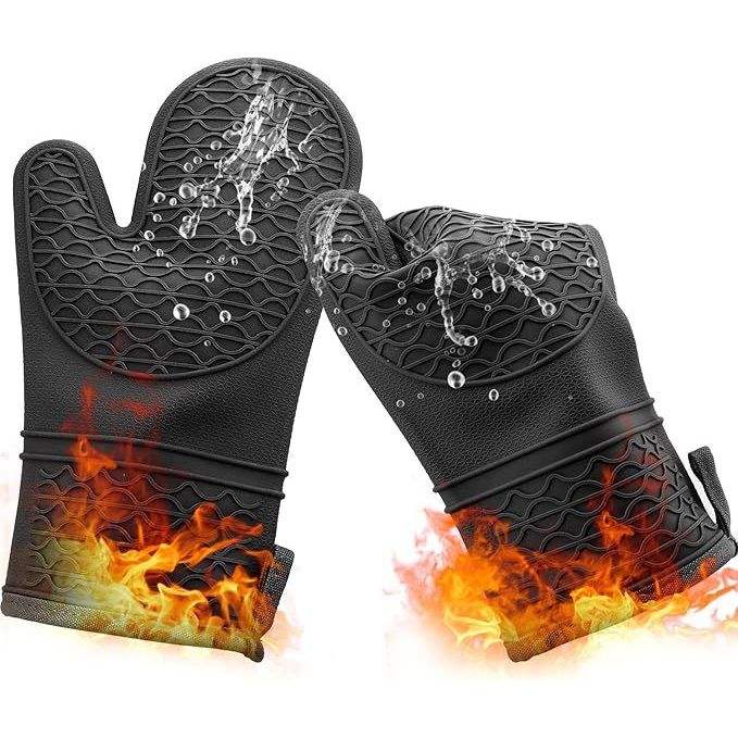2 paires de gants de four en silicone résistants à la chaleur jusqu'à 500 degrés, doublure en coton doux, gants de cuisine