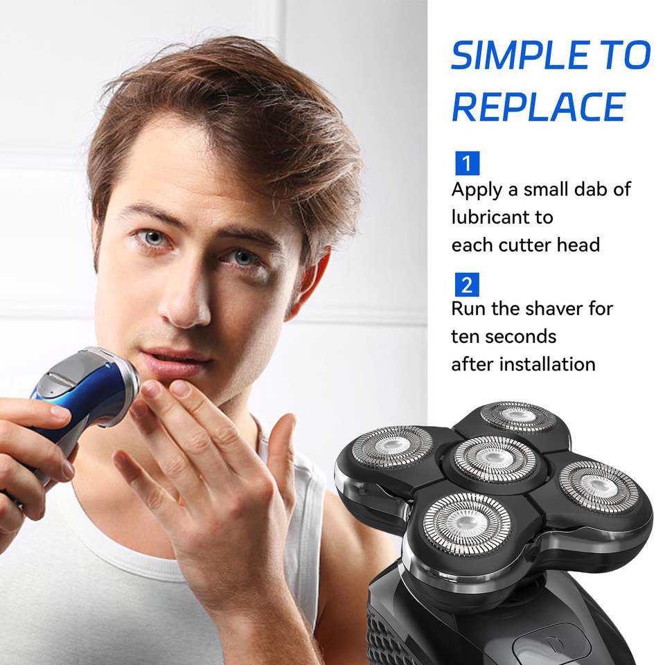 2 têtes de rechange à cinq lames pour rasoirs électriques pour hommes – Rasage de près pour le visage et le corps