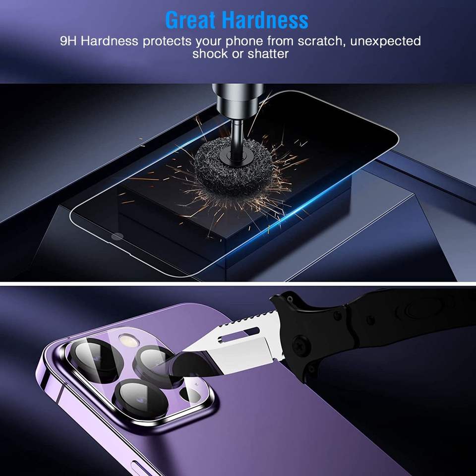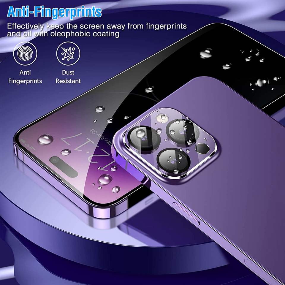 Lot de 4 protections d'écran : 2 protections d'écran anti-espion à couverture intégrale et 2 films de protection d'objectif d'appareil photo en verre trempé