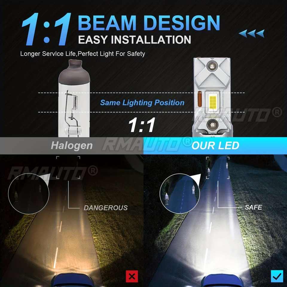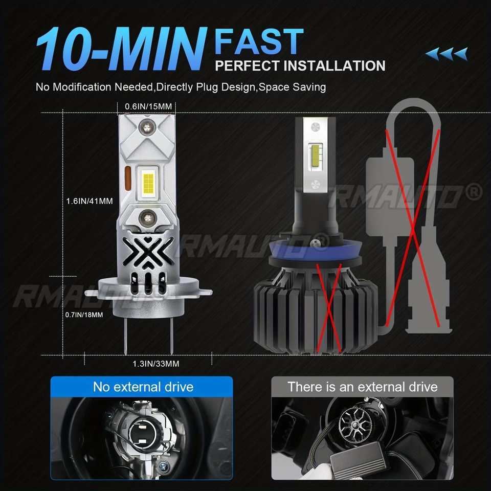2 ampoules LED H7 pour phares de voiture, en aluminium, 30000LM, puces CSP, luminosité 6000K, blanc, Plug and Play