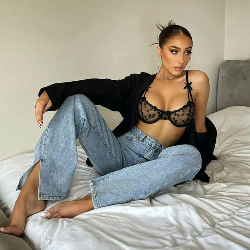 Ensemble de soutien-gorge en dentelle avec broderie de cœur 2 pièces Ensemble de soutien-gorge en dentelle transparente pour femmes Sous-vêtements sexy pour femmes Ensemble de lingerie