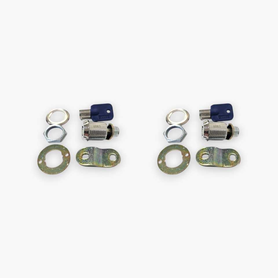 2 serrures, 2 clés, écrou, rondelle et pièces de came incurvées