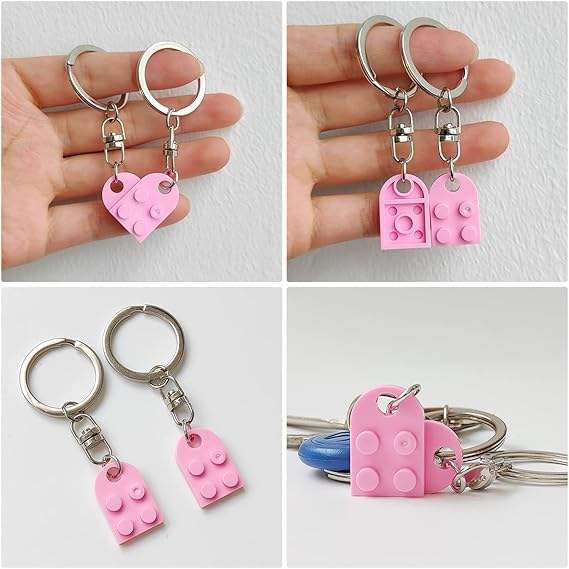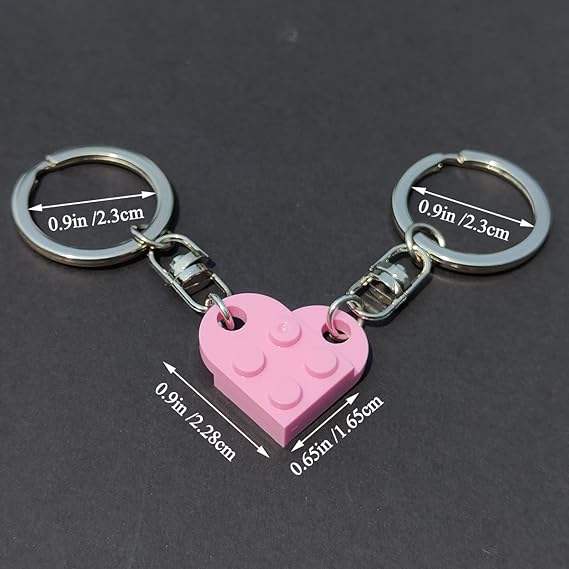 2 décorations en forme de cœur assorties, porte-clés en forme de cœur rouge, petit porte-clés en forme de cœur en briques pour couples, amoureux, parents