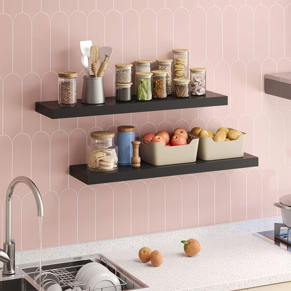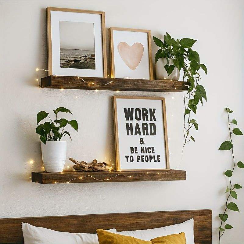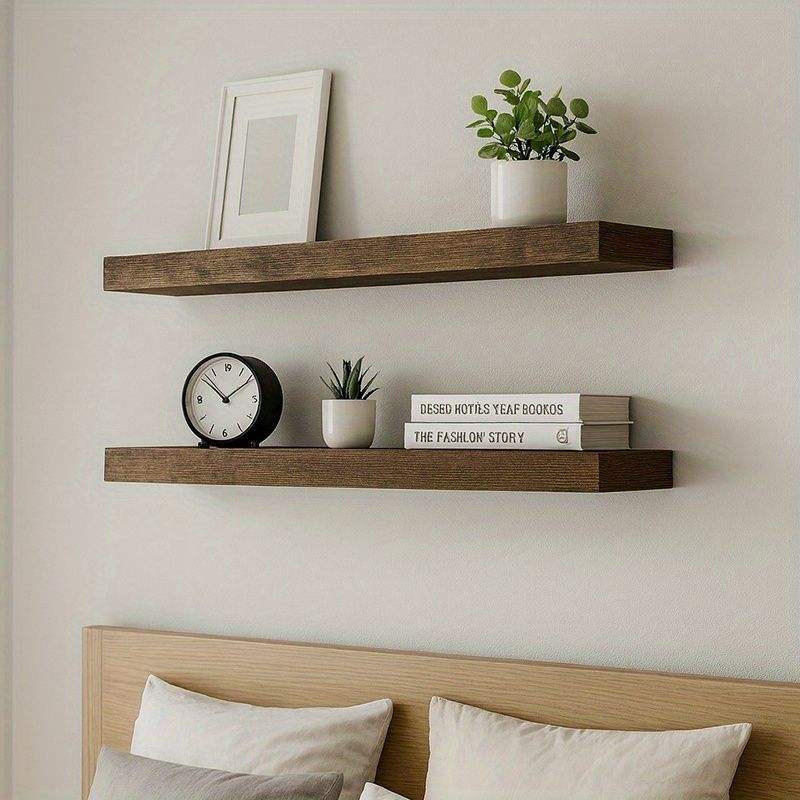 2 étagères murales flottantes en bois massif au design moderne, gain de place pour salon et cuisine