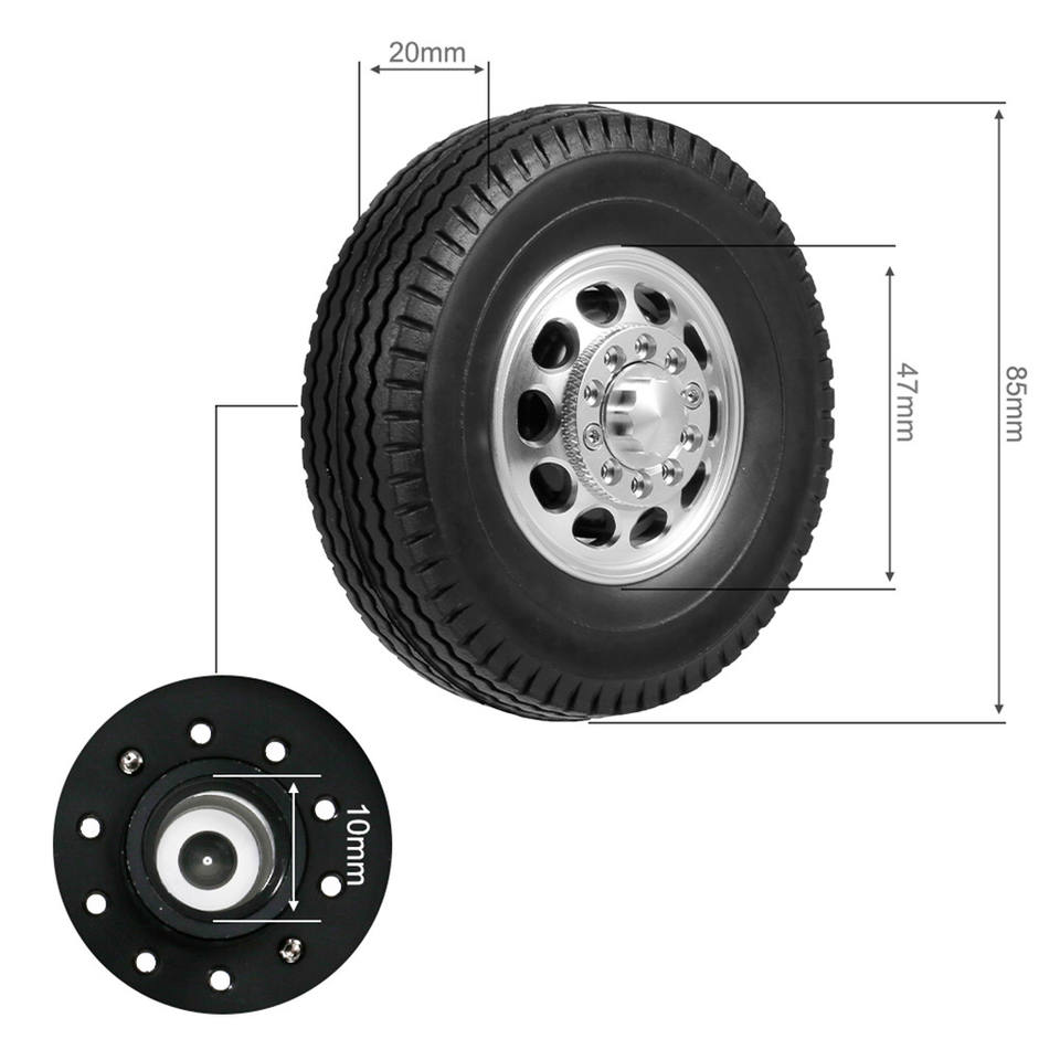 2pcs RC Remorque Avant Arrière Roues Pneu avec 10 Rayons Moyeux en Alliage d'Aluminium pour 1/14 Tamiya Tracteur Camion RC Climber Trailer
