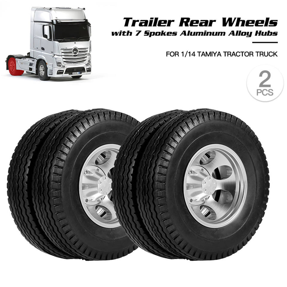 2pcs RC Remorque Avant Arrière Roues Pneu avec 10 Rayons Moyeux en Alliage d'Aluminium pour 1/14 Tamiya Tracteur Camion RC Climber Trailer