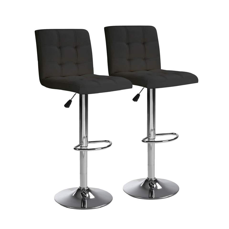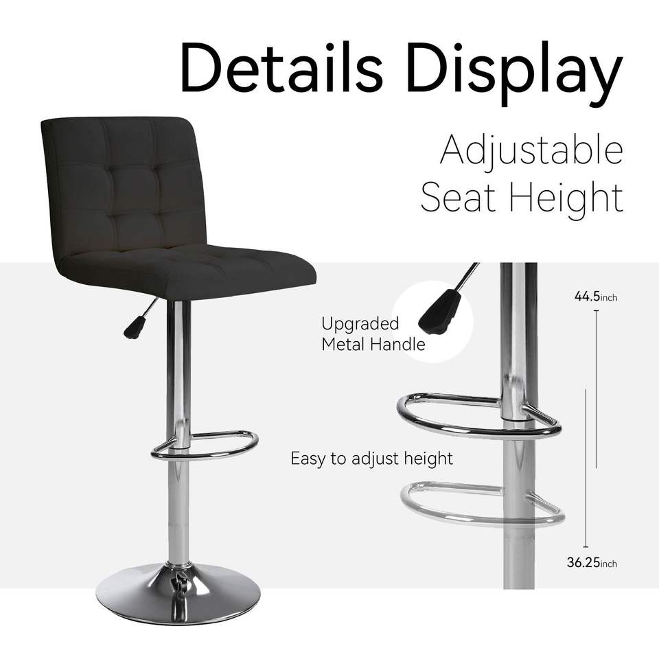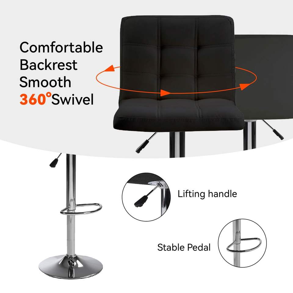 Ensemble de 2 tabourets de bar à hauteur de comptoir avec coussin carré, tabourets de bar noirs avec dossier et repose-pieds, 1 ensemble