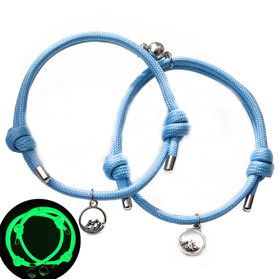 Bracelet de couple lumineux fluorescent, 2 pièces/ensemble, qui brille dans le noir, connexion magnétique, minimaliste, bracelet en corde tressée pour couple