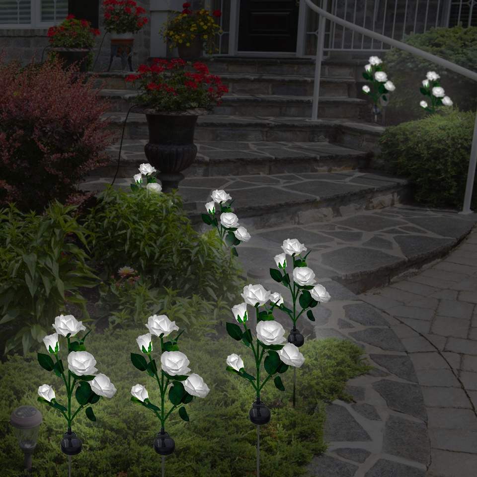 Lampe décorative LED à énergie solaire, 2 pièces, en forme de fleur de Rose, résistante à l'eau, pour décoration de jardin