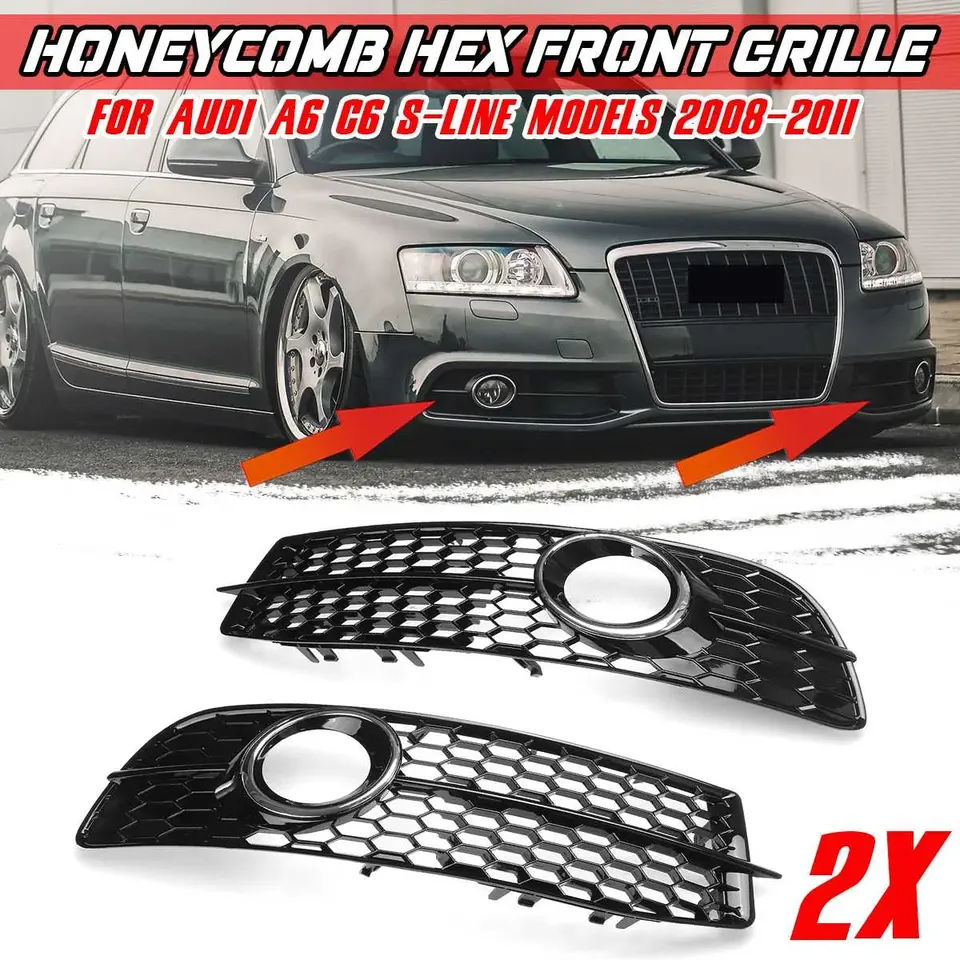 2x Grille de protection de phare antibrouillard avant pour Audi A6 C6 S-Line 2008-2011 4F0807681Q01C 4F0807681Q02C