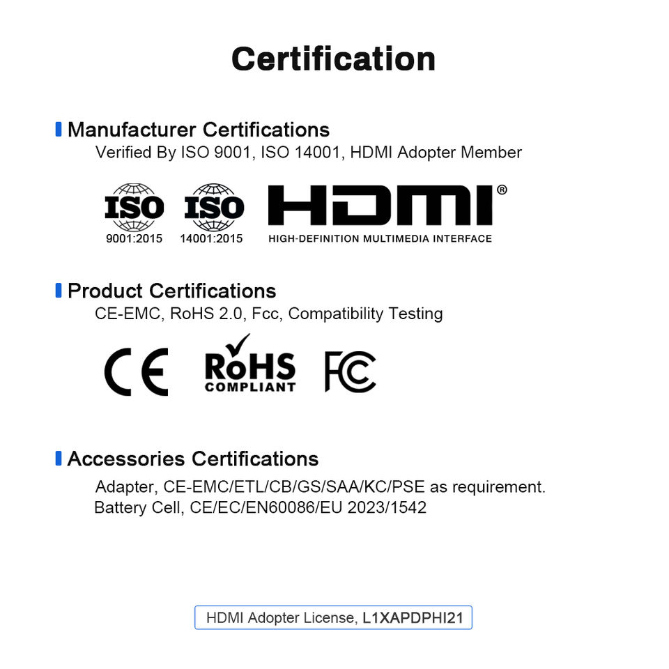 Certification d'usine:ISO 9001, ISO 14001, Adoptant HDMI