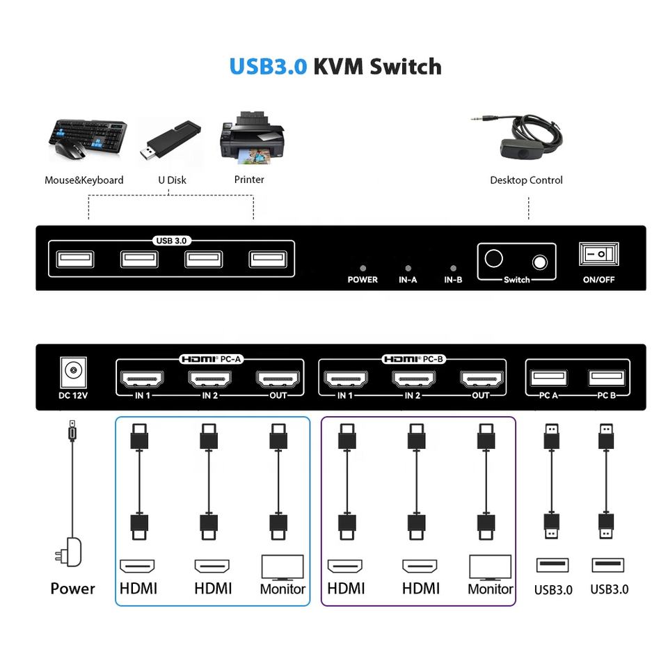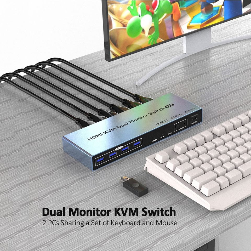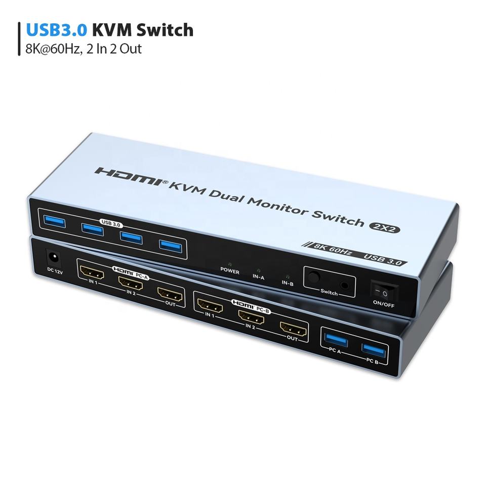 Commutateur KVM 2x2 USB3.0 HDMI 8K 8K60 2 moniteurs 2 ordinateurs 2 en 2 commutateurs HDMI OUT Commutateur KVM double moniteur avec 4 ports USB 3.0