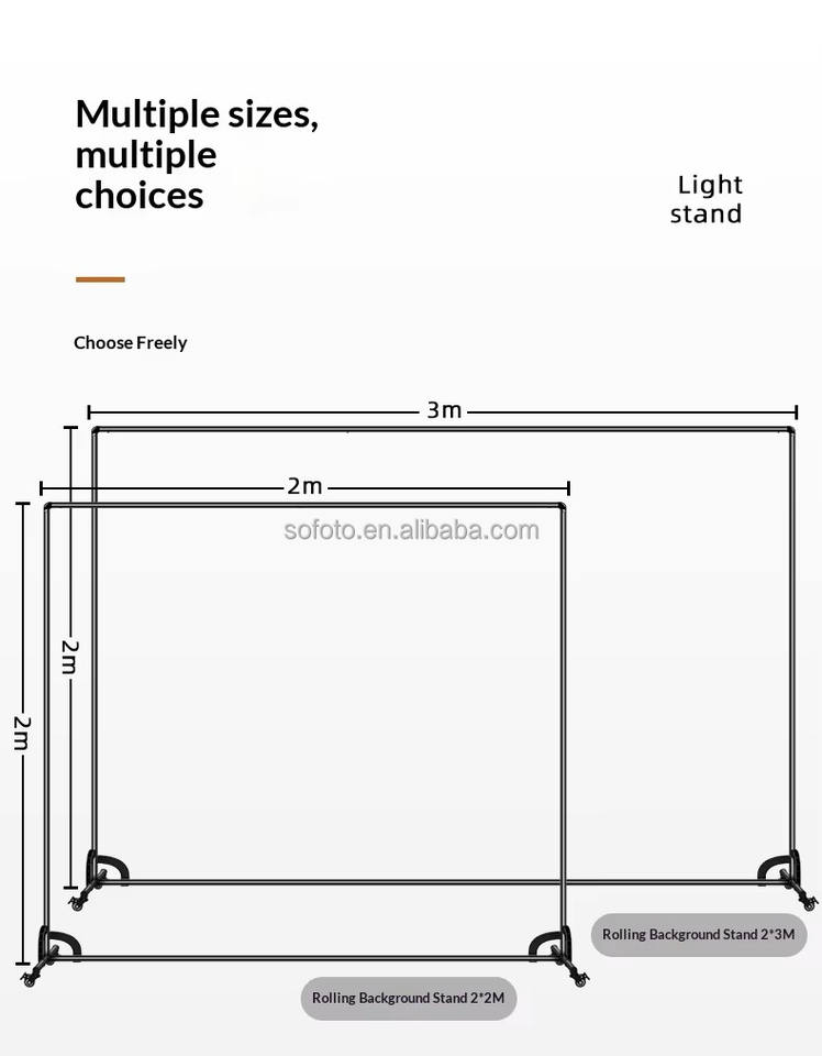 Support de fond vert mobile 2x3M avec roues pour studio photo et vidéo, support de fond roulant avec écran vert
