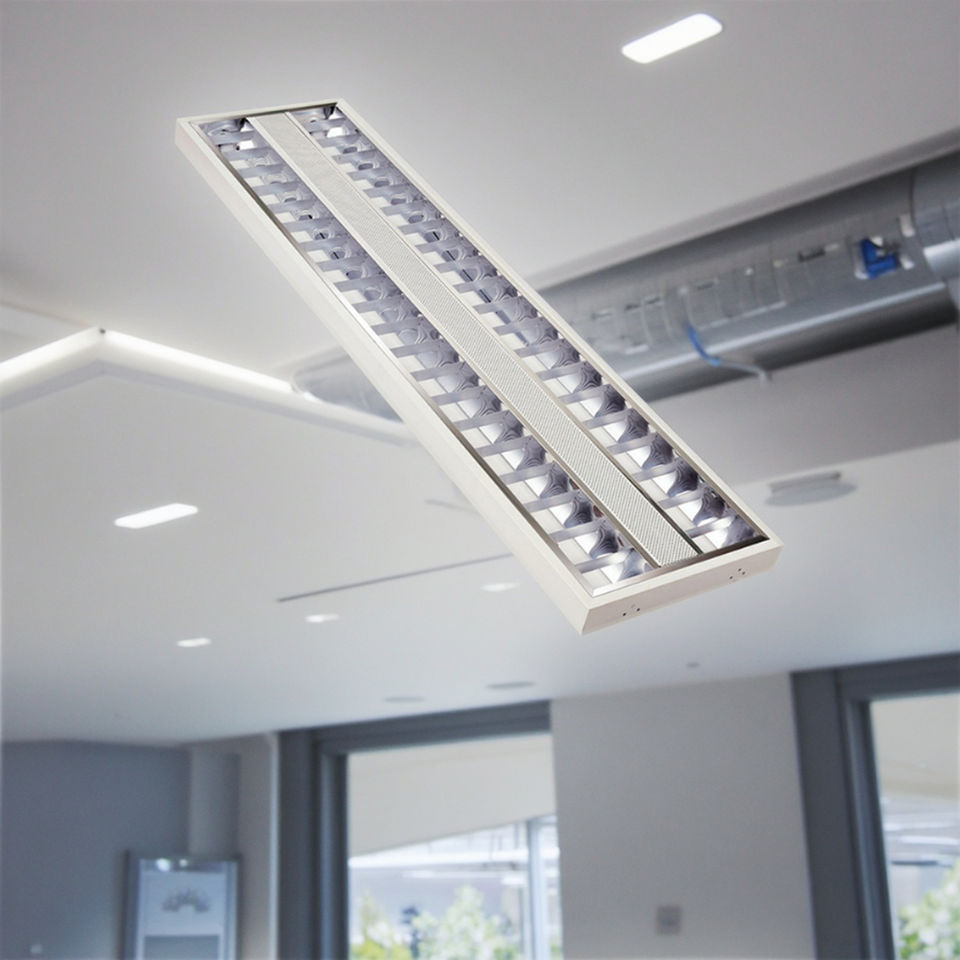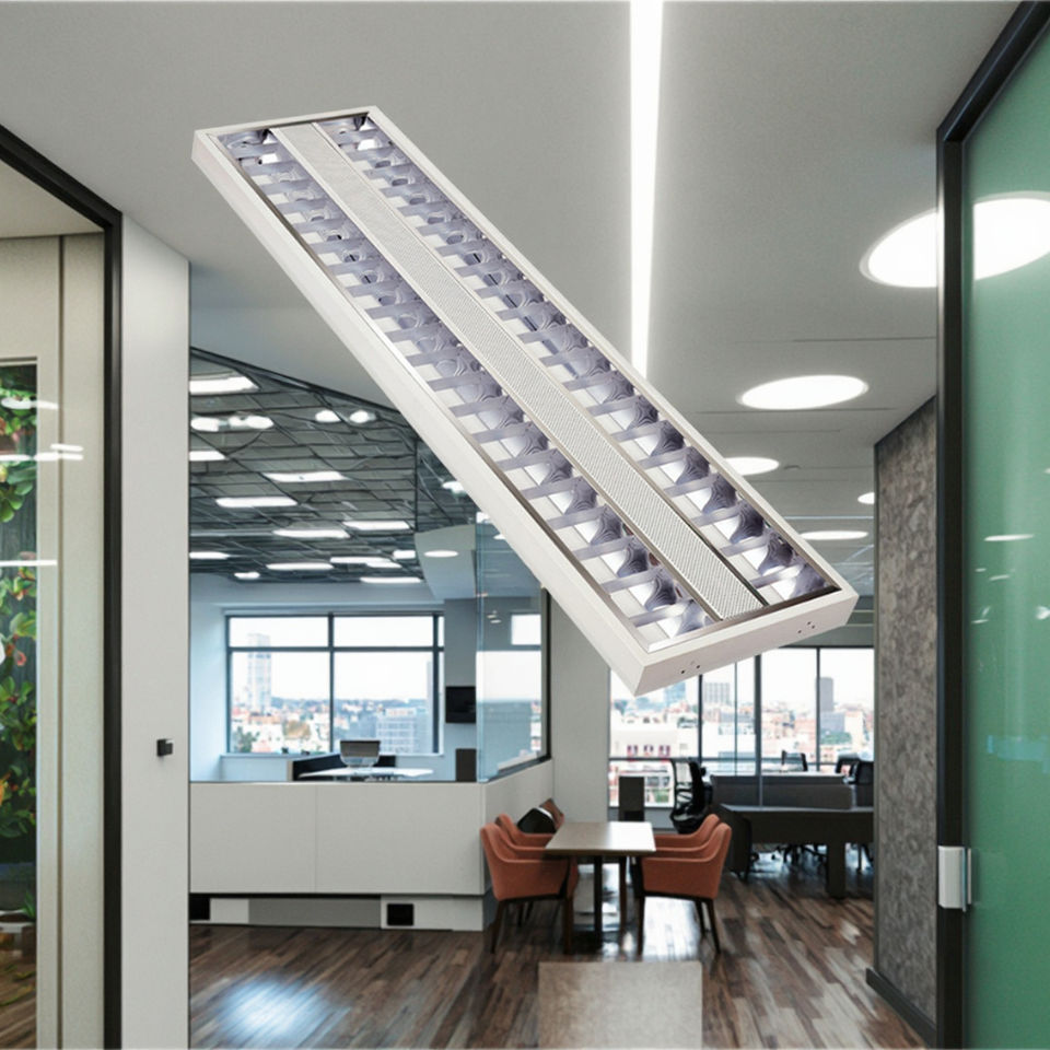 Lumière LED Troffer 2x40W T5 T8 36W avec réflecteur en aluminium pour usage de bureau - Lumière à grille et à persiennes