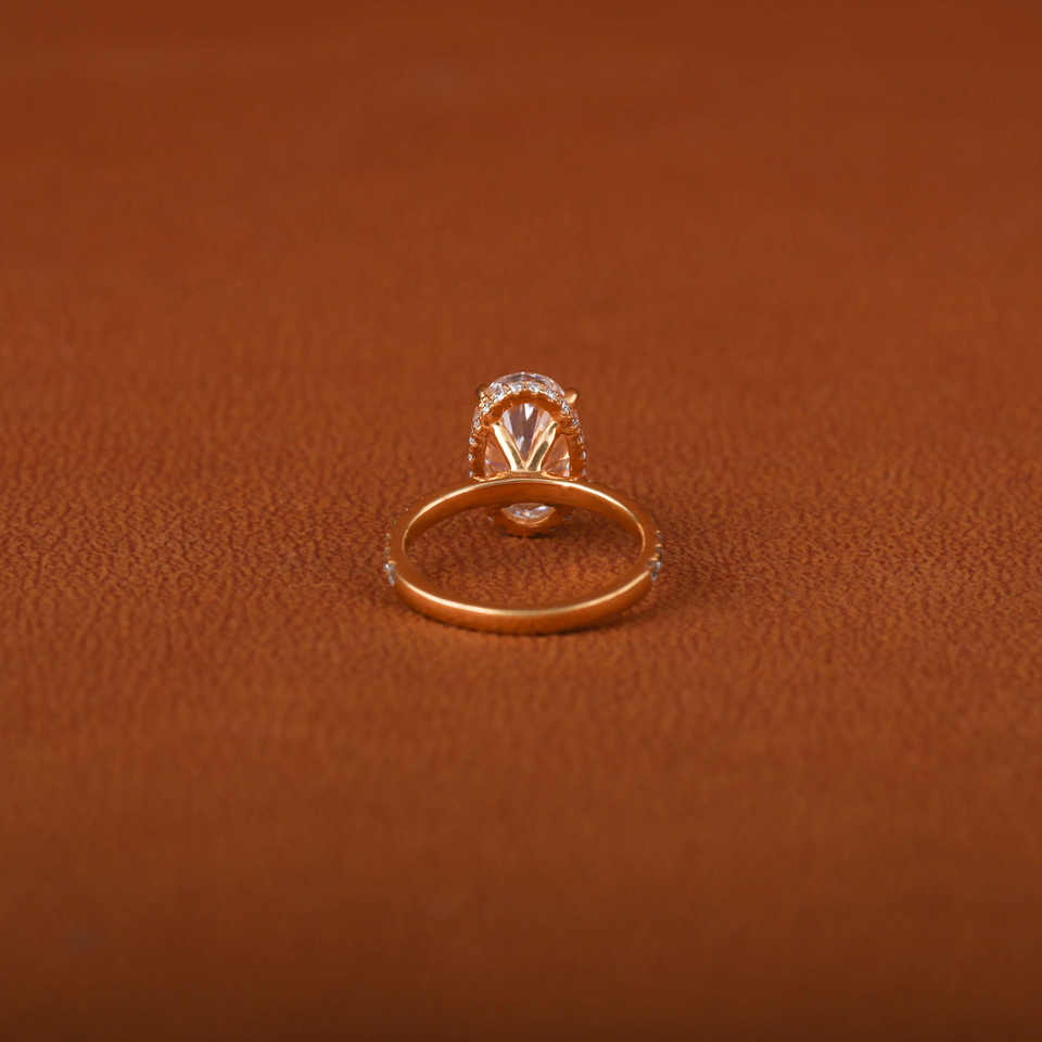 Bague de fiançailles en diamant de laboratoire de taille ovale de 3.0 carats de style classique avec des pierres d'accent glamour en or jaune 14KT certifié IGI