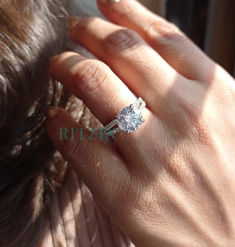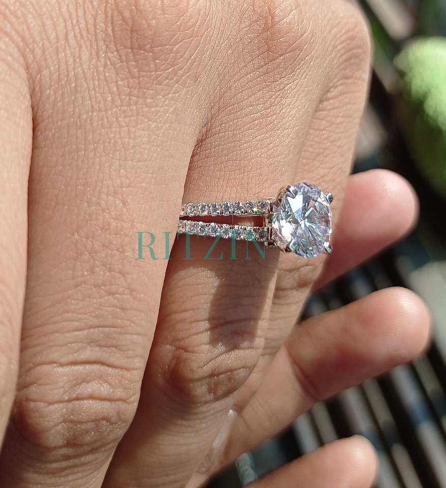 Bague de fiançailles fendue en Moissanite à coupe ronde de 3.00 CT