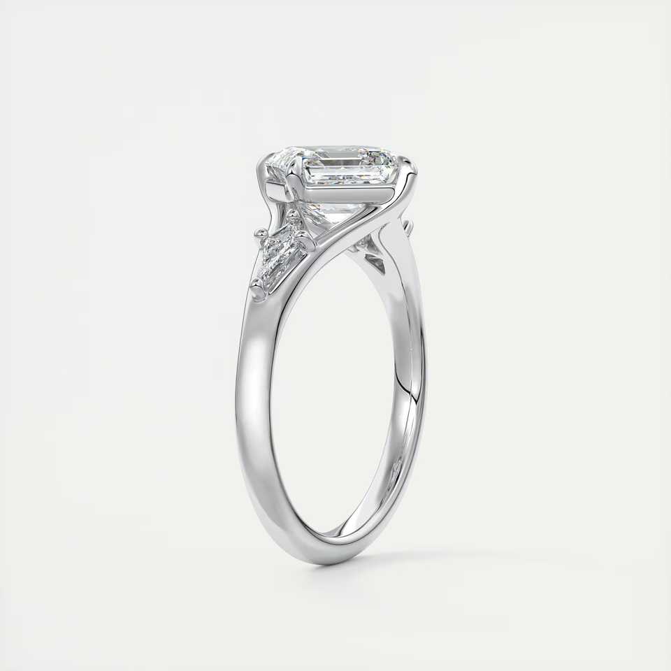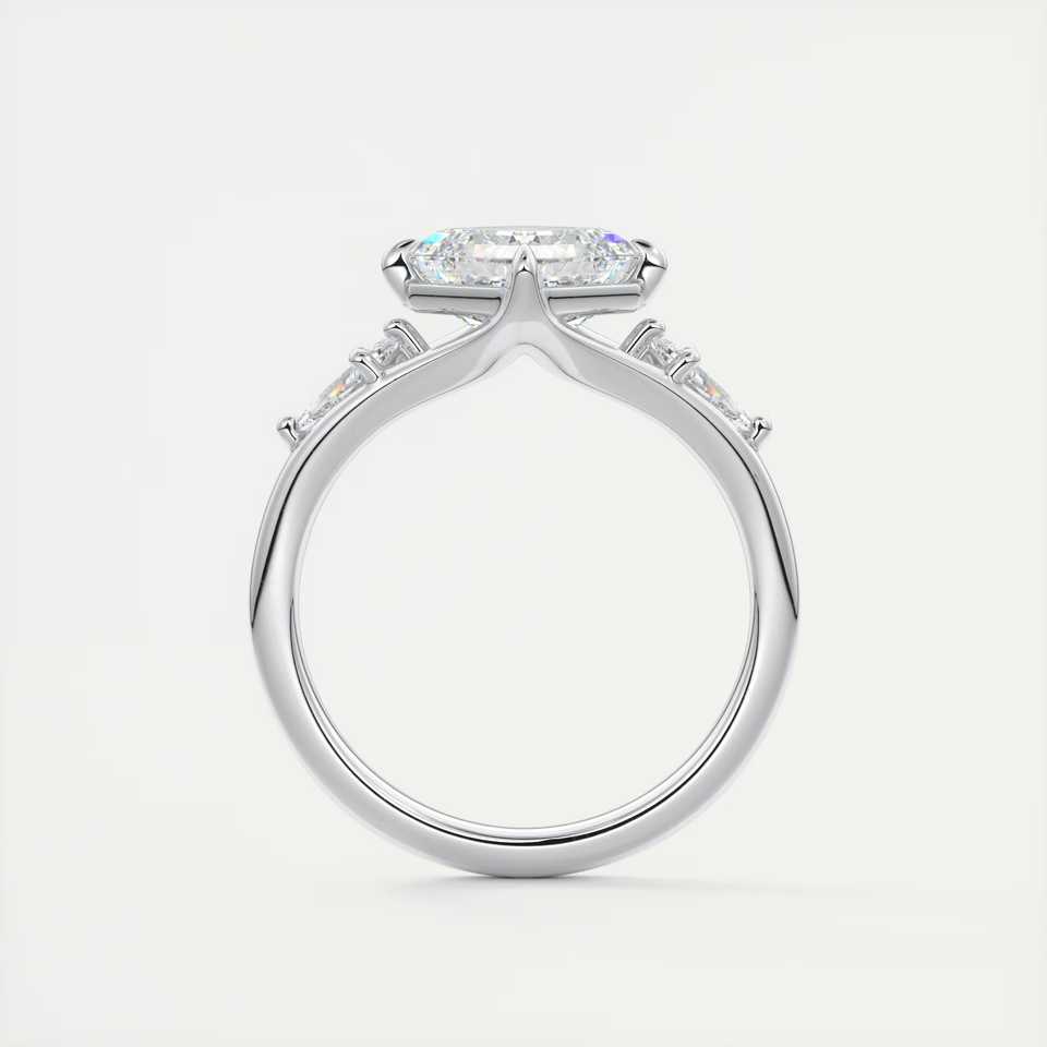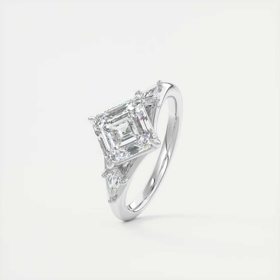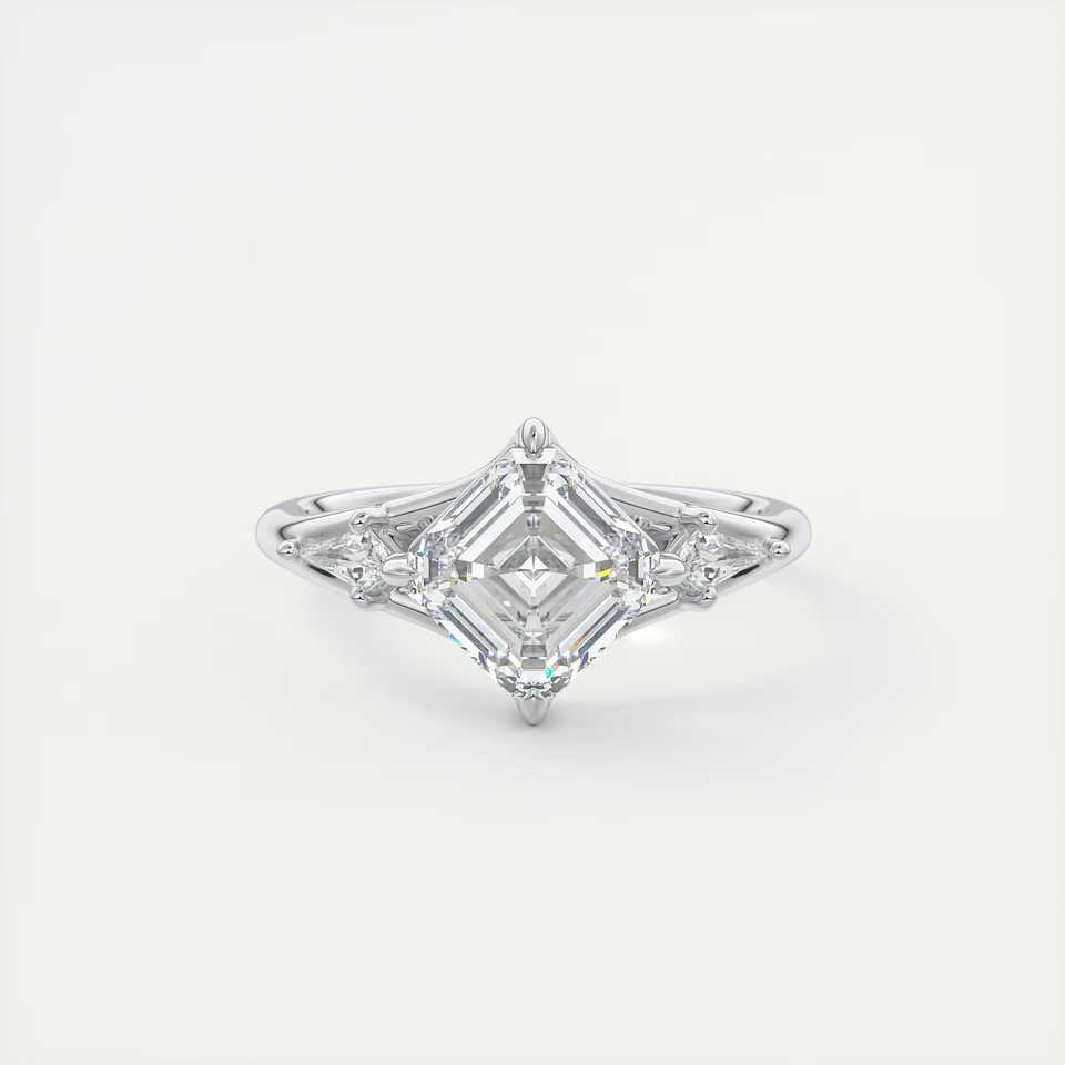 Bague de fiançailles à trois pierres en diamant de laboratoire taille Asscher de 3,00 carats en or blanc 14 carats à tige fendue