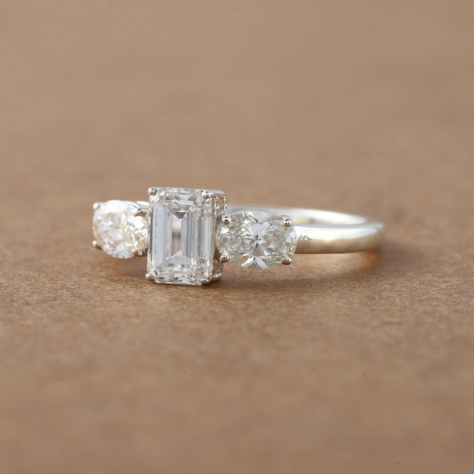3.00 TCW taille émeraude laboratoire cultivé diamant trois pierres réglage luxueux 14K or massif bague de fiançailles bague cadeau pour les femmes IGI