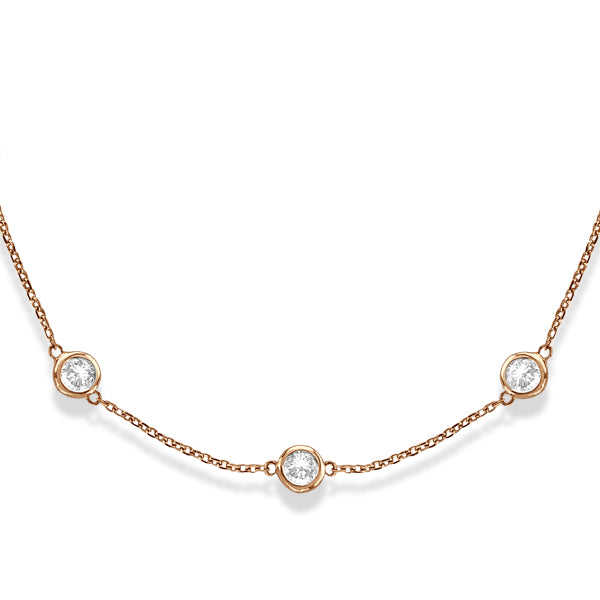 Collier à pierres serties en diamant de 3,00 carats en or rose 14 carats, chic et élégant