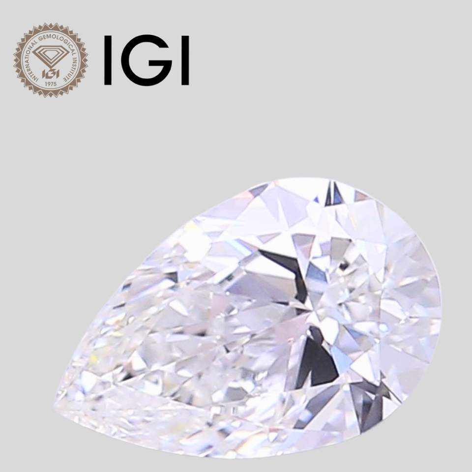 Diamant de laboratoire de 3,04 ct, taille poire, couleur E, pureté VVS2, certifié IGI, pour la fabrication de bijoux