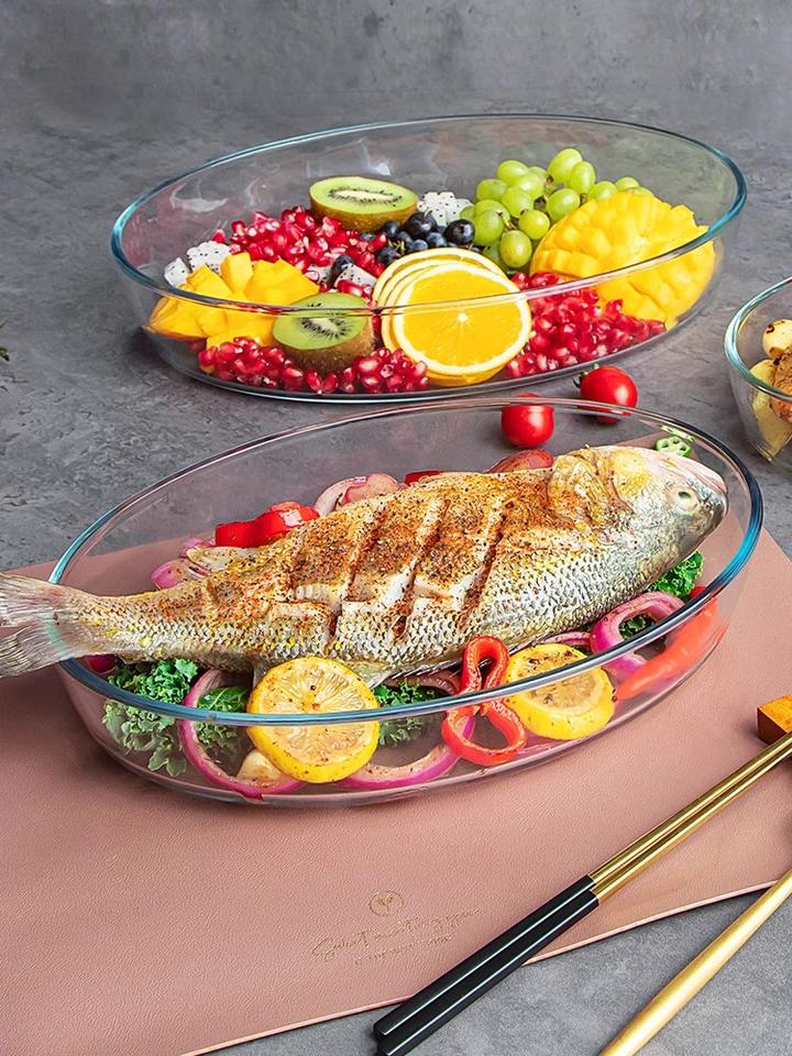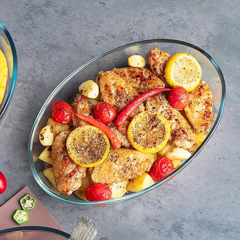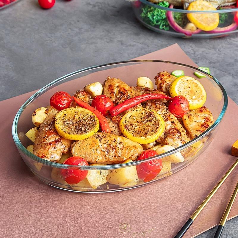 Plat de cuisson ovale en verre trempé sans plomb de qualité alimentaire 3.0L pour cuisine, réfrigérateur et four, ensemble d'ustensiles de cuisson en verre