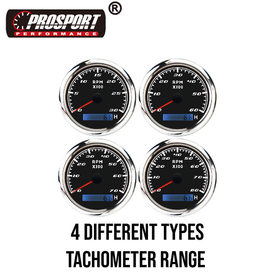 3-1/3 "85mm Tachymètre étanche à l'eau et à la rouille RPM 3000 Face noire avec compteur horaire pour bateau marin Yachat
