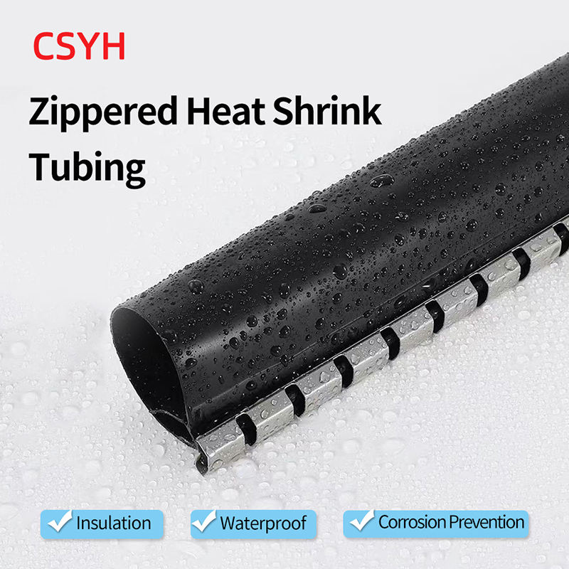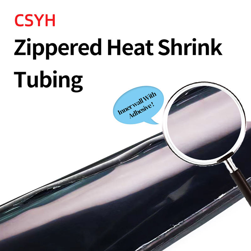 Manchon de protection de réparation de câble adhésif double paroi 3:1 Tube thermorétractable d'isolation PE étanche avec fermeture à glissière