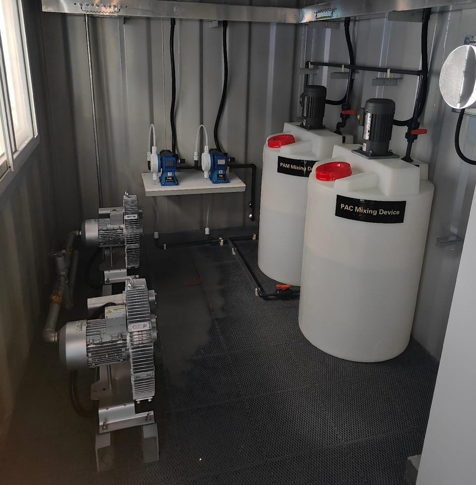 Système de recyclage des eaux usées de 30 m³/jour avec pompe et PLC, unité mobile de traitement des eaux usées par biologie active