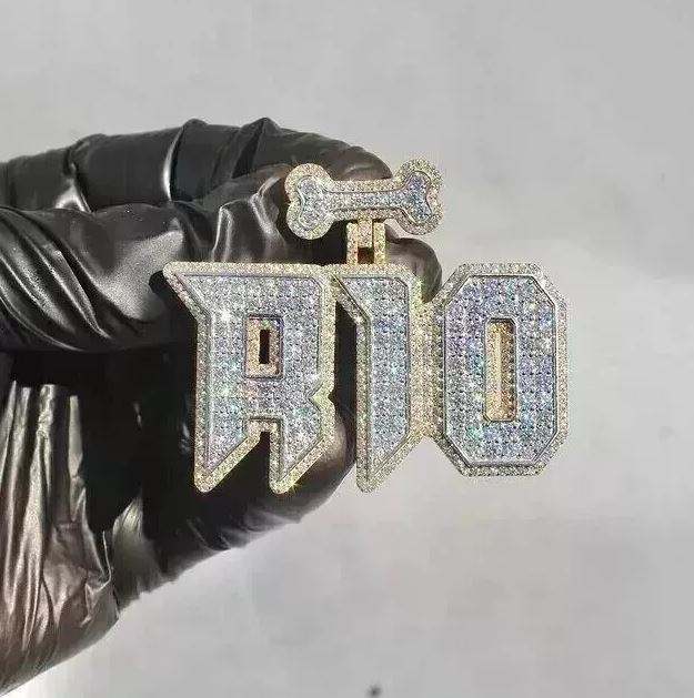 Pendentif lettre personnalisé coupe ronde 3.10Ct avec véritable Moissanite plaqué or jaune 14K pour les fêtes