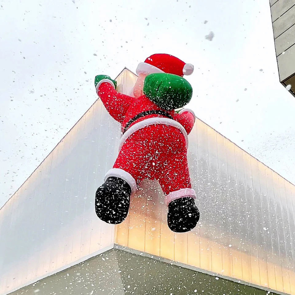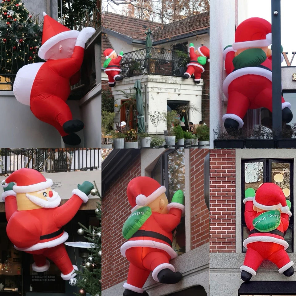 3-10M Grand Père Noël Gonflé Escalade le Mur avec Sac Cadeau Blanc Rouge Publicité Gonflable Décoration Extérieure de Noël