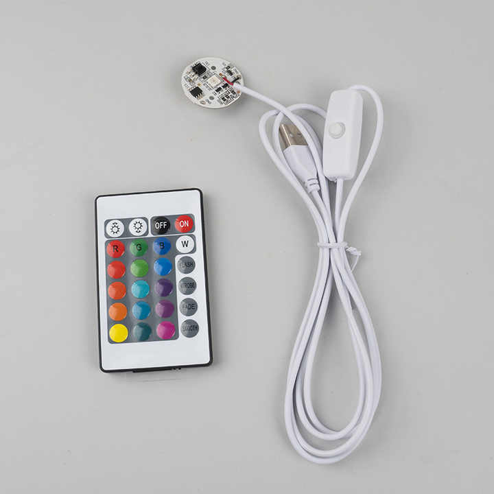 Source lumineuse LED avec base en bois, télécommande 24 touches, couleur RVB, diamètre 3,1 cm, câble USB inclus