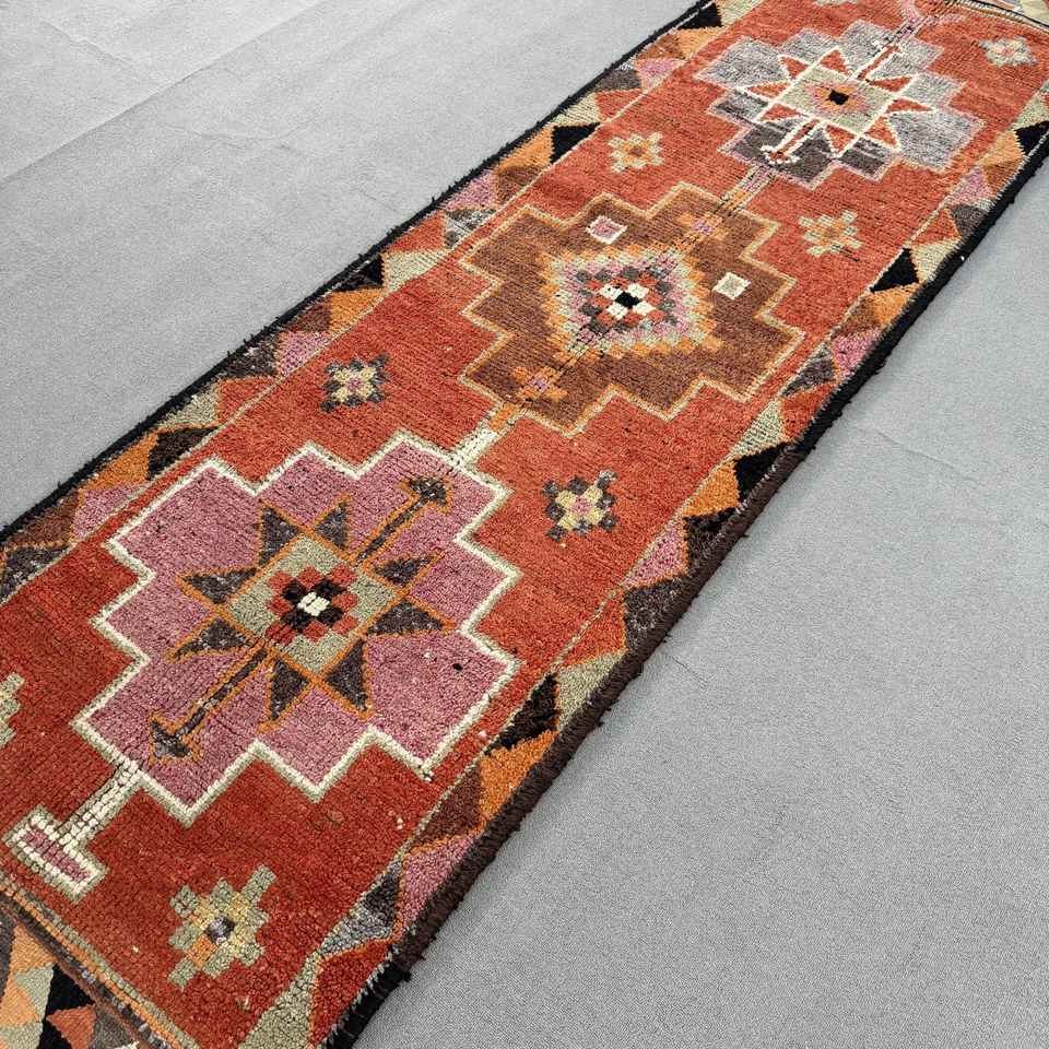 Tapis de 3,1 x 10,5 pieds, tapis de couloir vintage, tapis persan Herki rouge