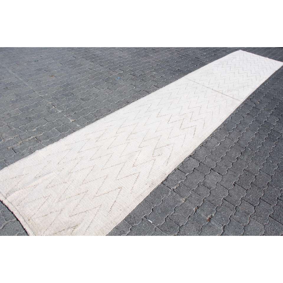 Tapis turc 3,1 x 16,4 pieds, tapis oriental vintage blanc en laine