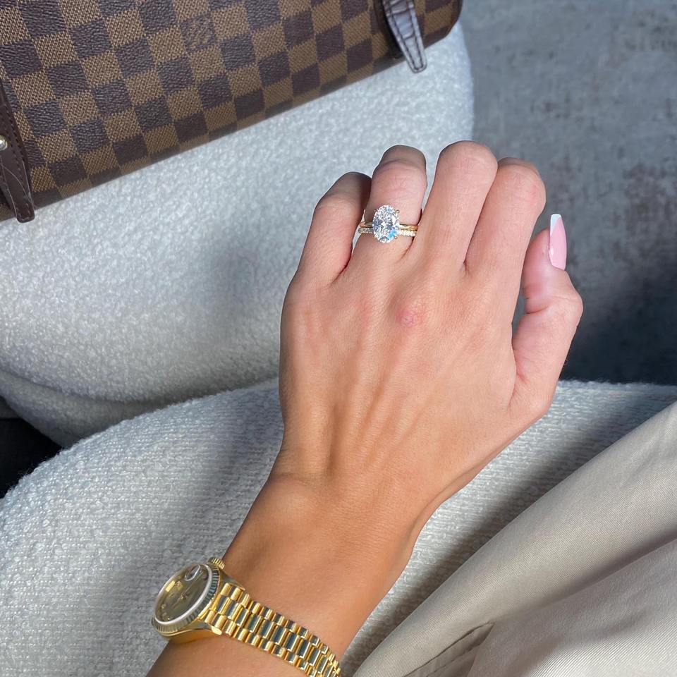 Ensemble de bague de fiançailles solitaire en diamant de laboratoire ovale de 3,2 carats _ Alliance de mariage simple assortie _ Ensemble de mariage 14 carats _ Certifié IGI