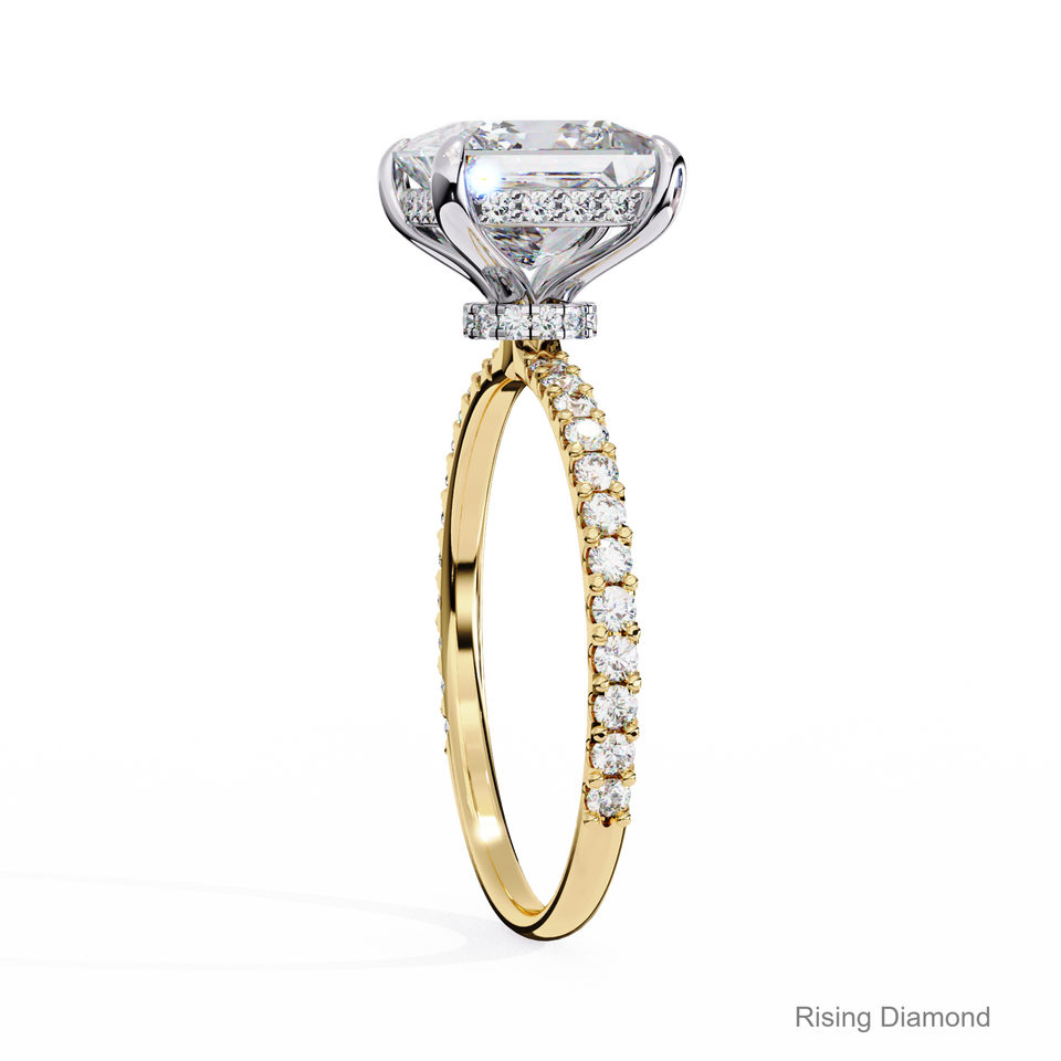 3.25 ct princesse coupe laboratoire cultivé diamant caché Halo bague de fiançailles or jaune CVD bague cadeau d'anniversaire pour elle