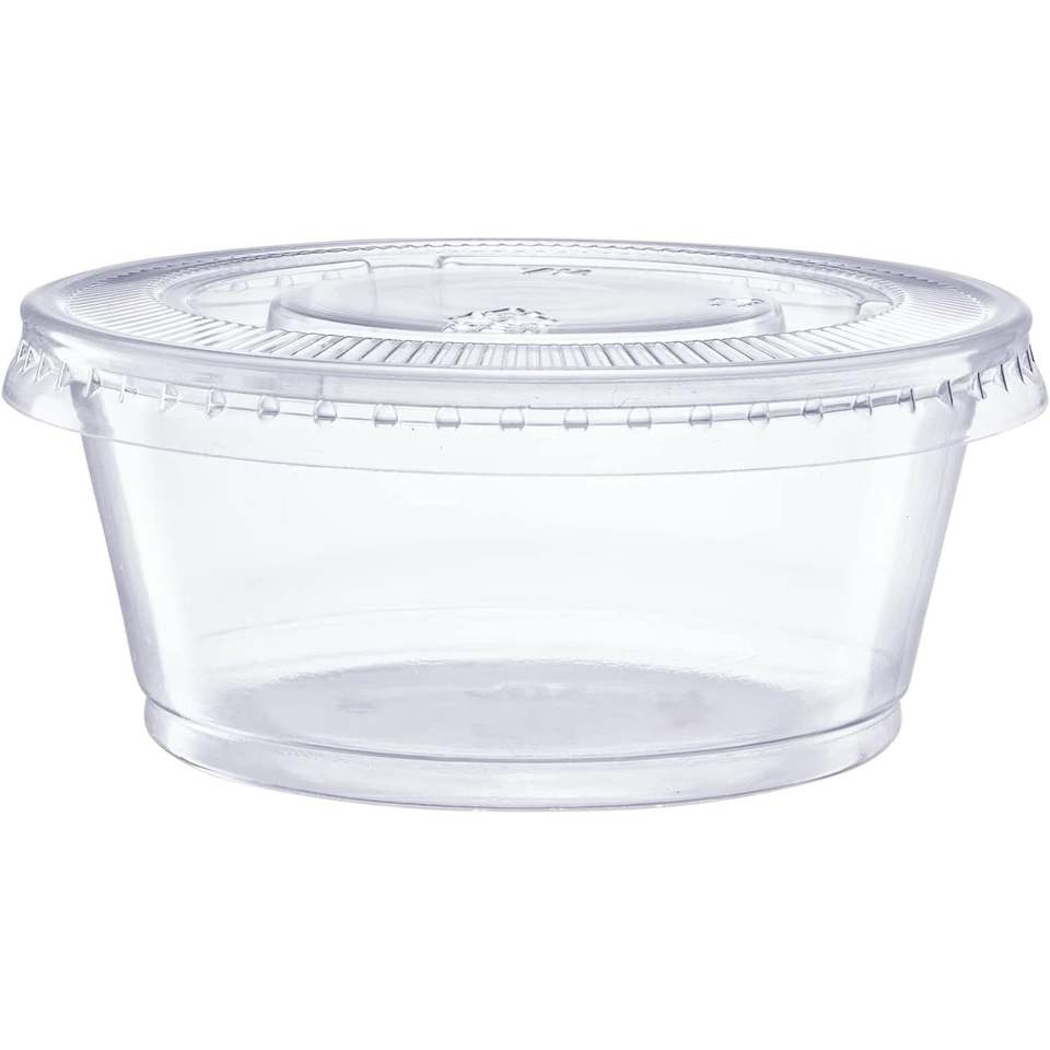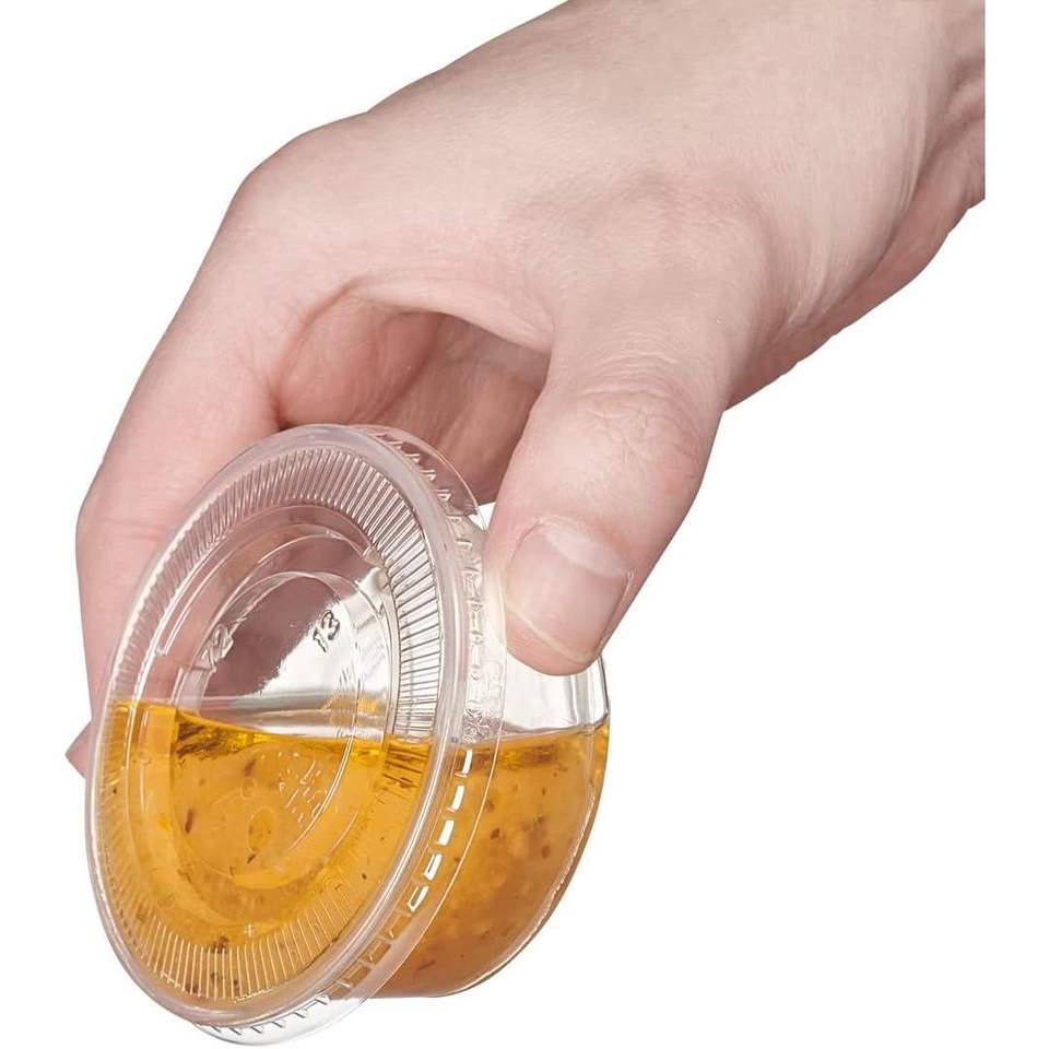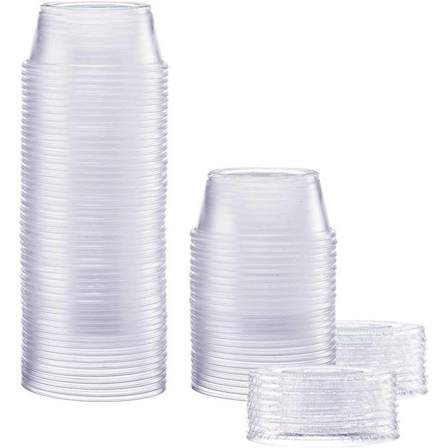 3,25 oz. Gobelets soufflés en plastique jetables transparents avec couvercles, 50 unités, parfaites pour les portions et les shots de gelée