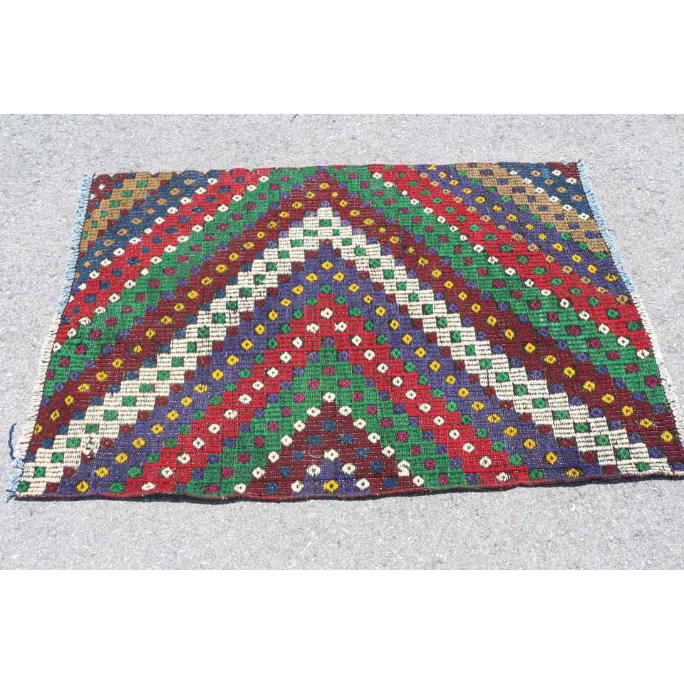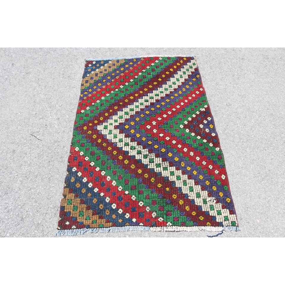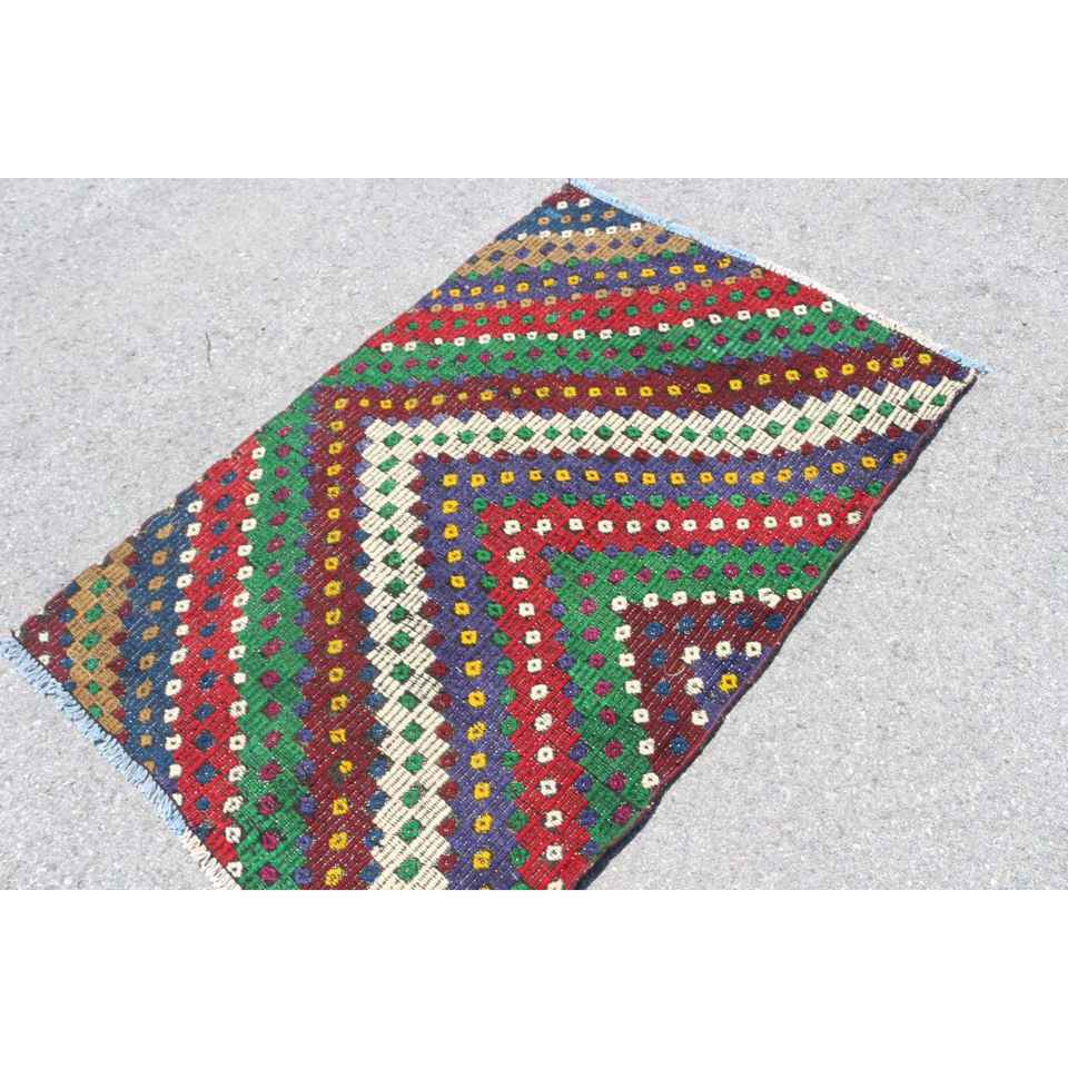 Tapis turc à accents turcs de 3,2 x 5 pieds, tapis en laine à carreaux vintage rouge et vert