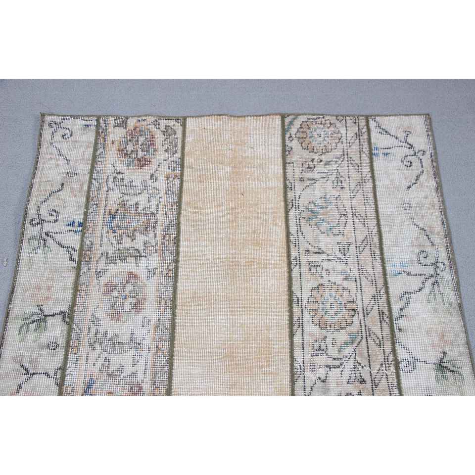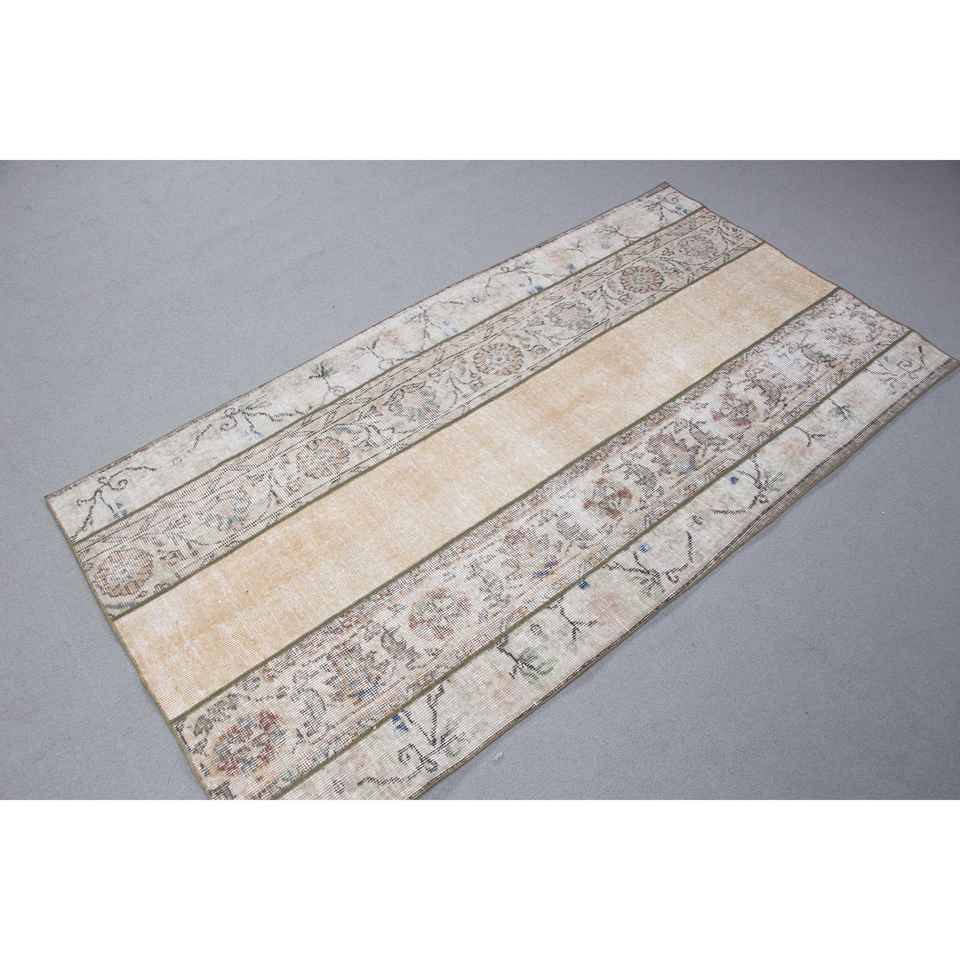 Tapis turc vintage 3,2x6 pieds, tapis d'appoint, tapis oriental en laine beige et bleu