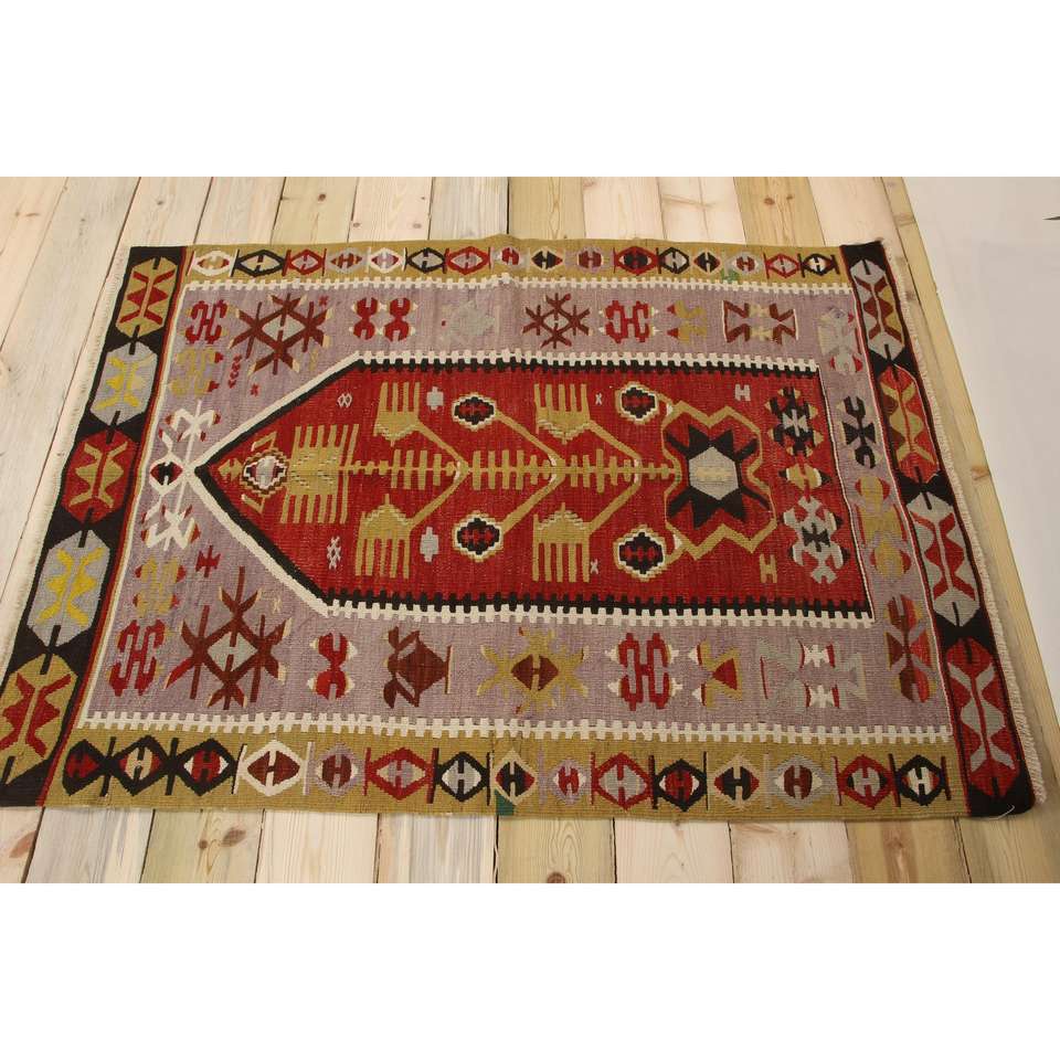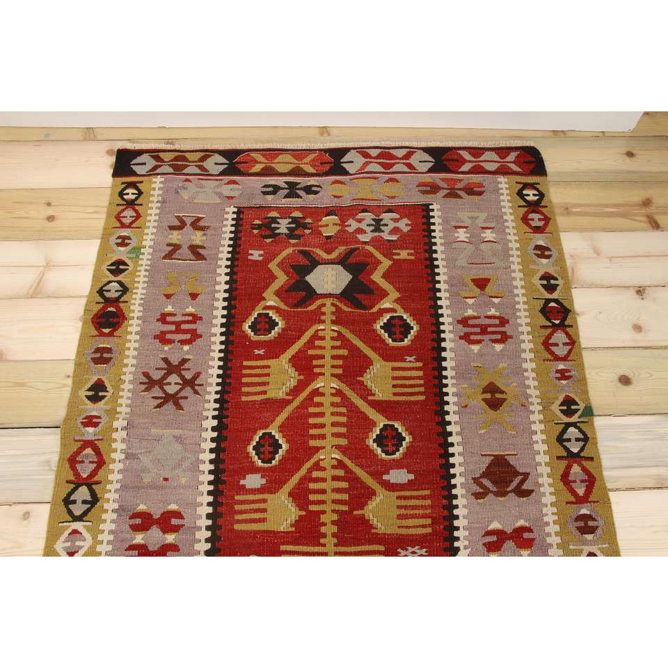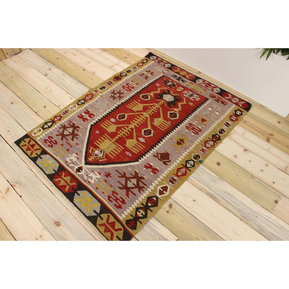 Tapis turc 3,3x4,5 pieds, rouge, patchwork, en laine, avec envers en latex, design traditionnel écologique, poils moyens